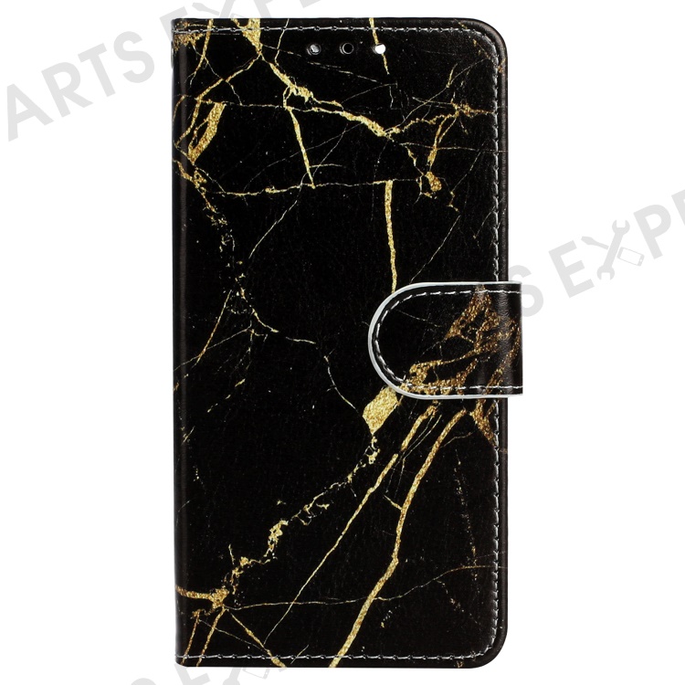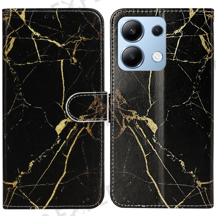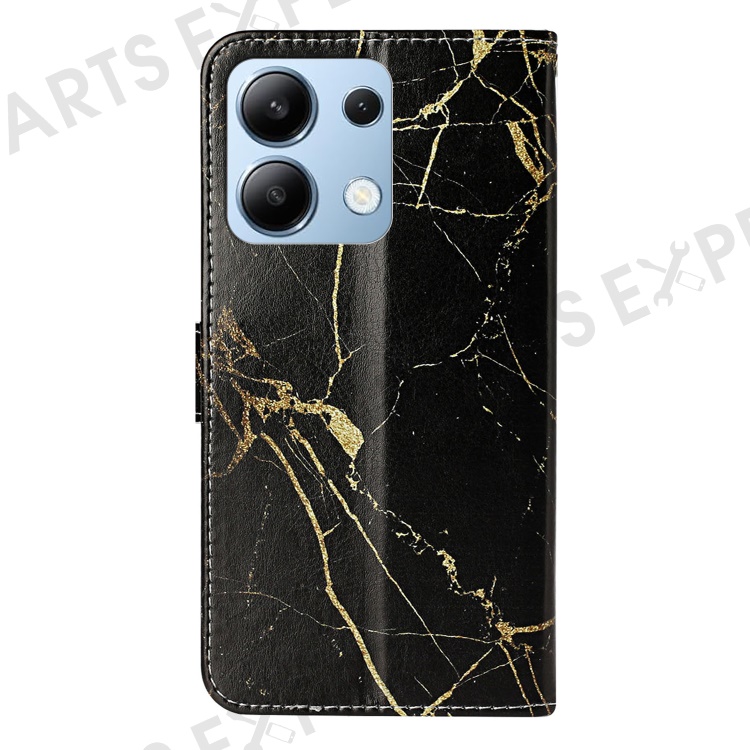 For Xiaomi Redmi Note 13 4G Case Pattern PU Leather Shockproof Flip Phone Cover - Black Gold Marble