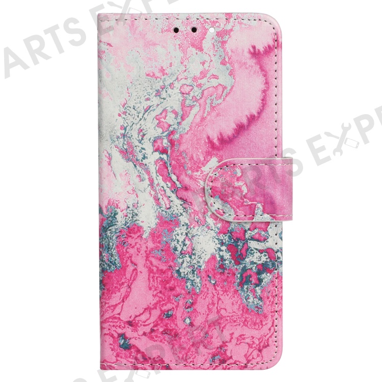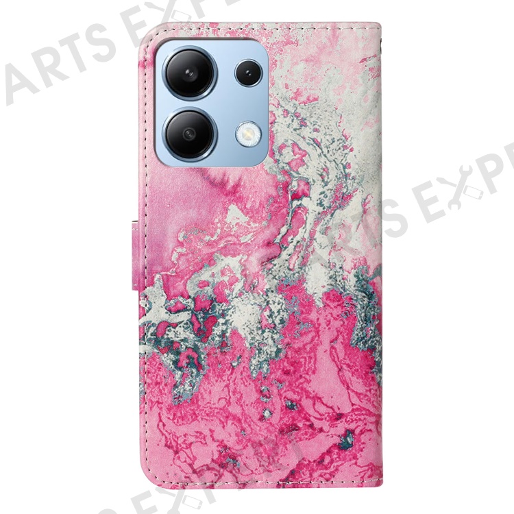 For Xiaomi Redmi Note 13 4G Case Pattern PU Leather Shockproof Flip Phone Cover - Pink Seawater Marble