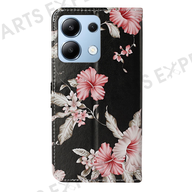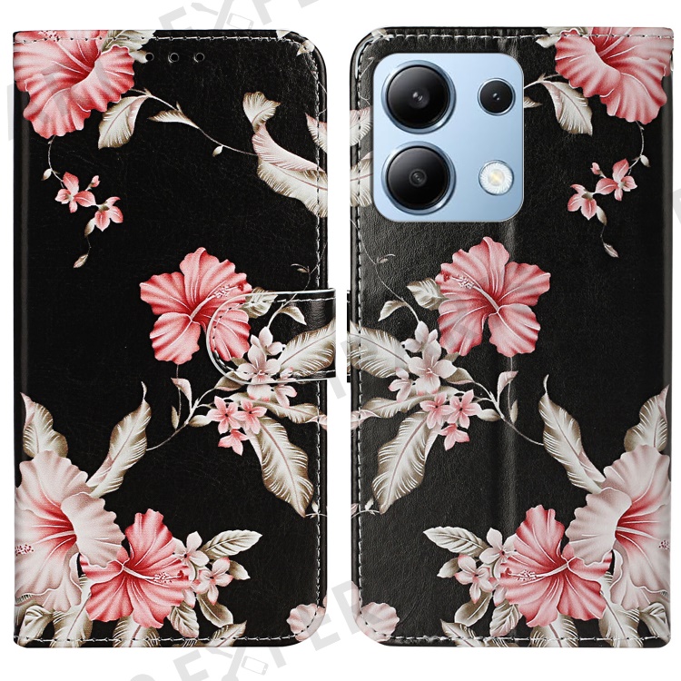 For Xiaomi Redmi Note 13 4G Case Pattern PU Leather Shockproof Flip Phone Cover - Rhododendron