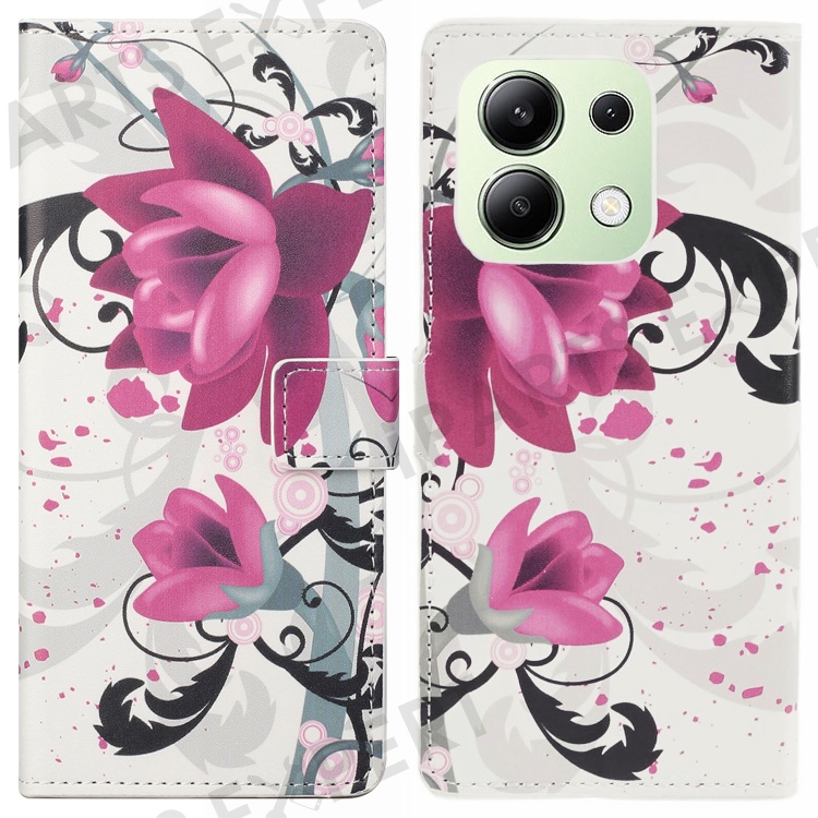 For Xiaomi Redmi Note 13 4G Case Wallet PU Leather Pattern Printing Phone Cover - Lotus
