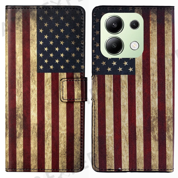 For Xiaomi Redmi Note 13 4G Case Wallet PU Leather Pattern Printing Phone Cover - The American Flag