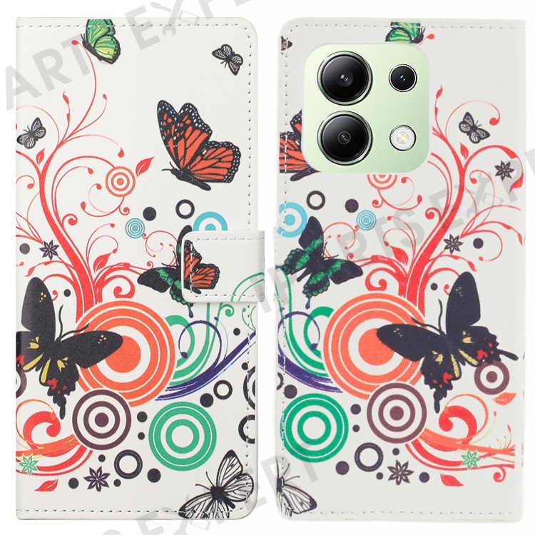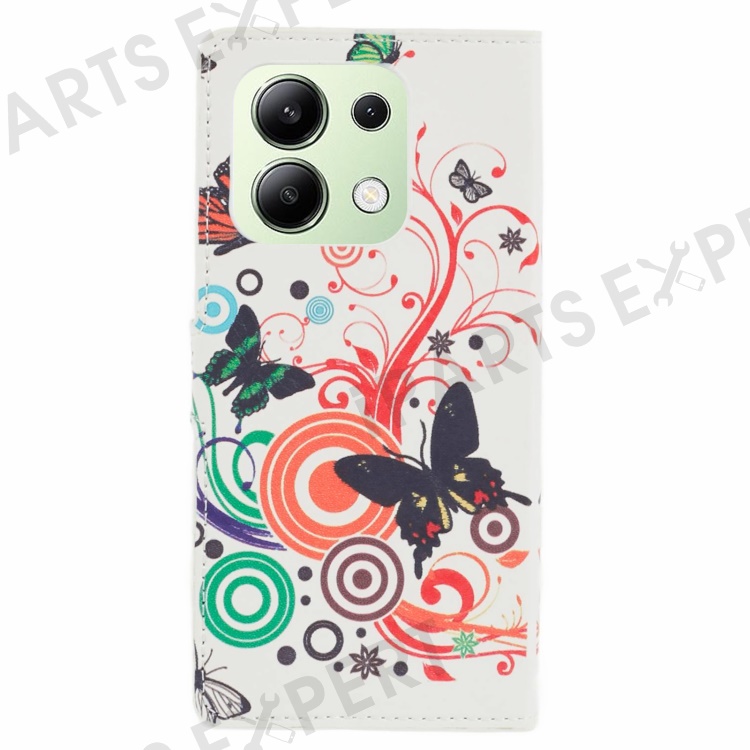 For Xiaomi Redmi Note 13 4G Case Wallet PU Leather Pattern Printing Phone Cover - White / Butterflies