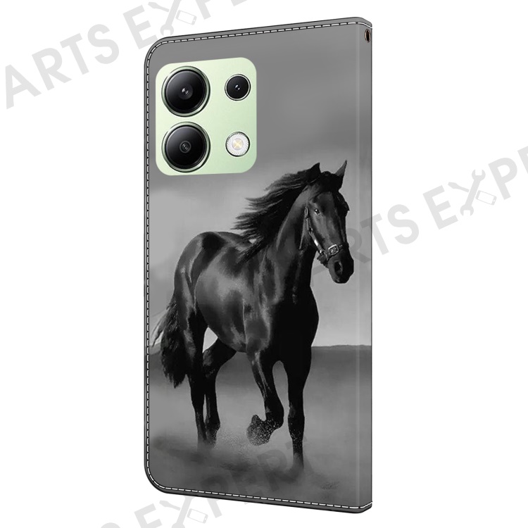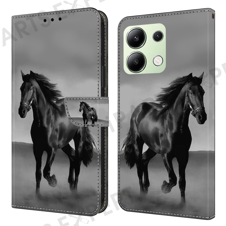 For Xiaomi Redmi Note 13 4G Leather Case 3D Pattern Printed Stand Wallet Phone Cover - Black Horse