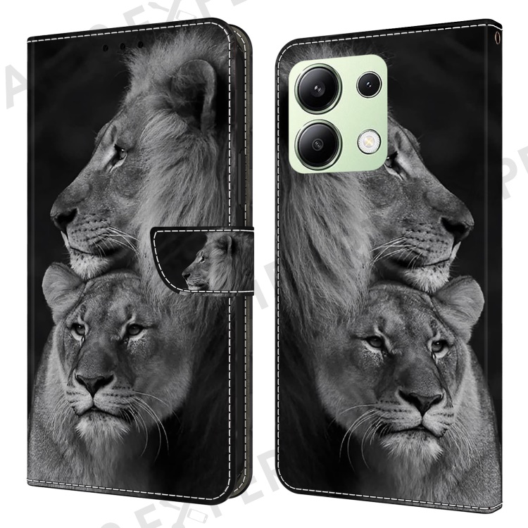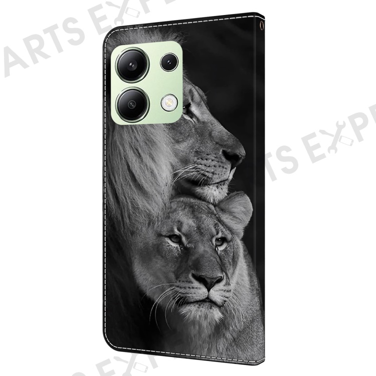 For Xiaomi Redmi Note 13 4G Leather Case 3D Pattern Printed Stand Wallet Phone Cover - Couple Lions