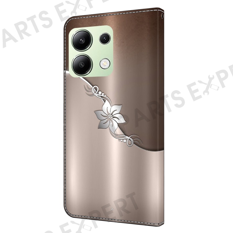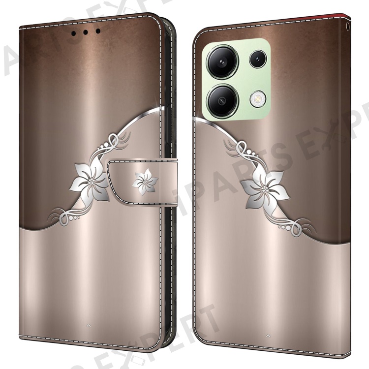For Xiaomi Redmi Note 13 4G Leather Case 3D Pattern Printed Stand Wallet Phone Cover - Silver Flower