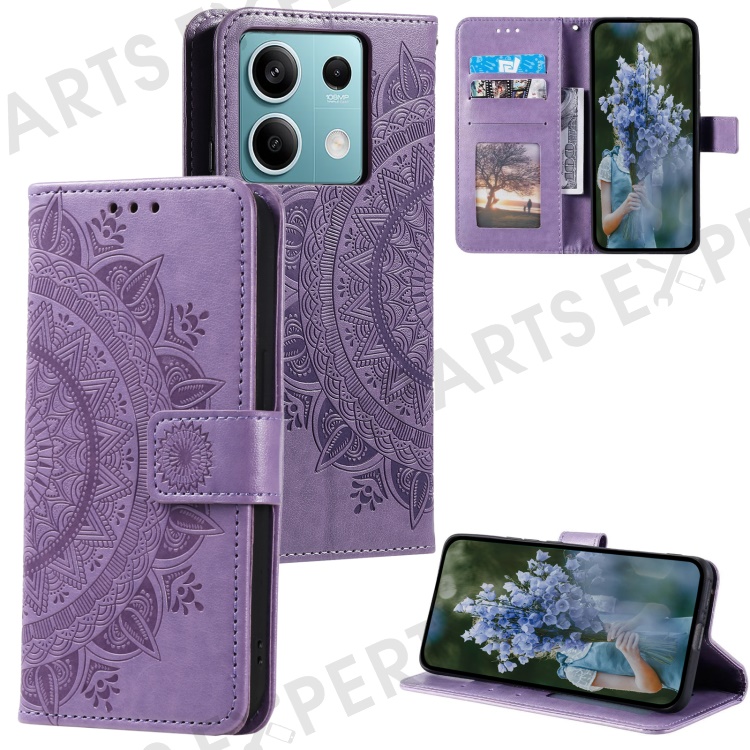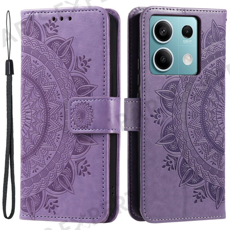 For Xiaomi Redmi Note 13 5G Leather Case Mandala Flower Cover Magnetic Clasp - Purple