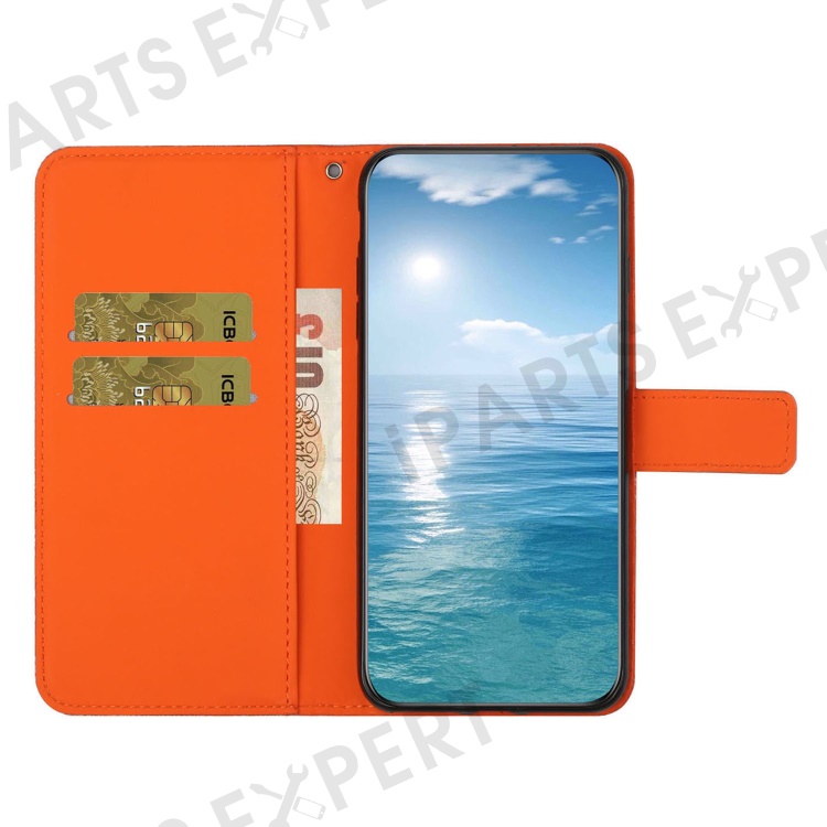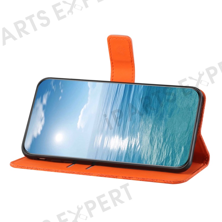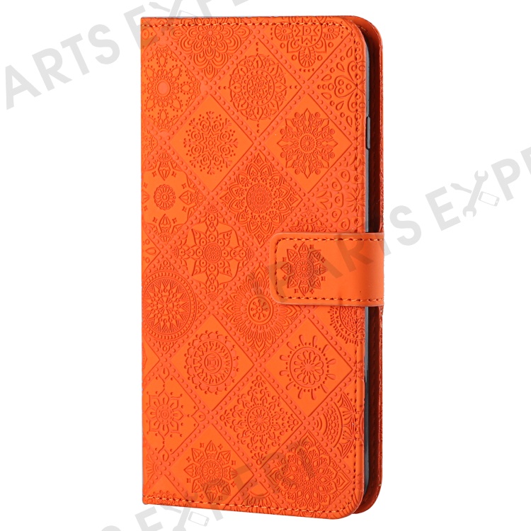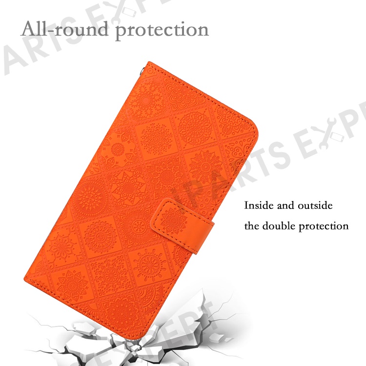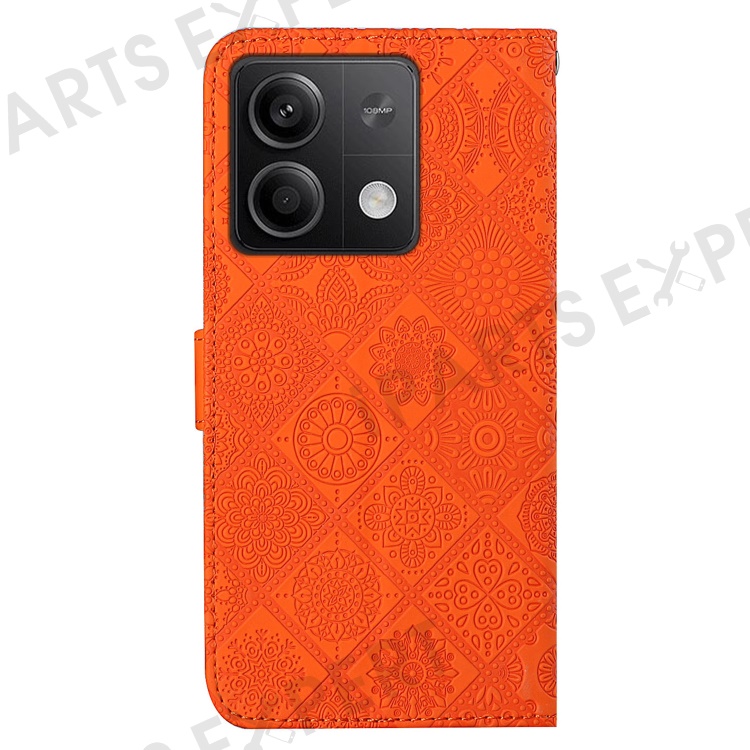 For Xiaomi Redmi Note 13 5G Phone Case Ethnic Style Imprinted Flower Pattern Leather Cover - Orange