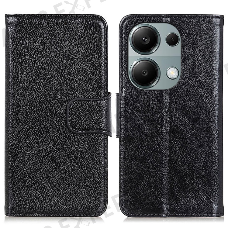 For Xiaomi Redmi Note 13 Pro 4G / Poco M6 Pro 4G Case Split Leather Wallet Card Holder Stand Phone Cover - Black