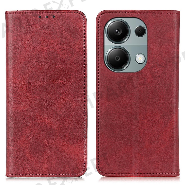 For Xiaomi Redmi Note 13 Pro 4G / Poco M6 Pro 4G Case Wallet Split Leather Protective Phone Cover - Red