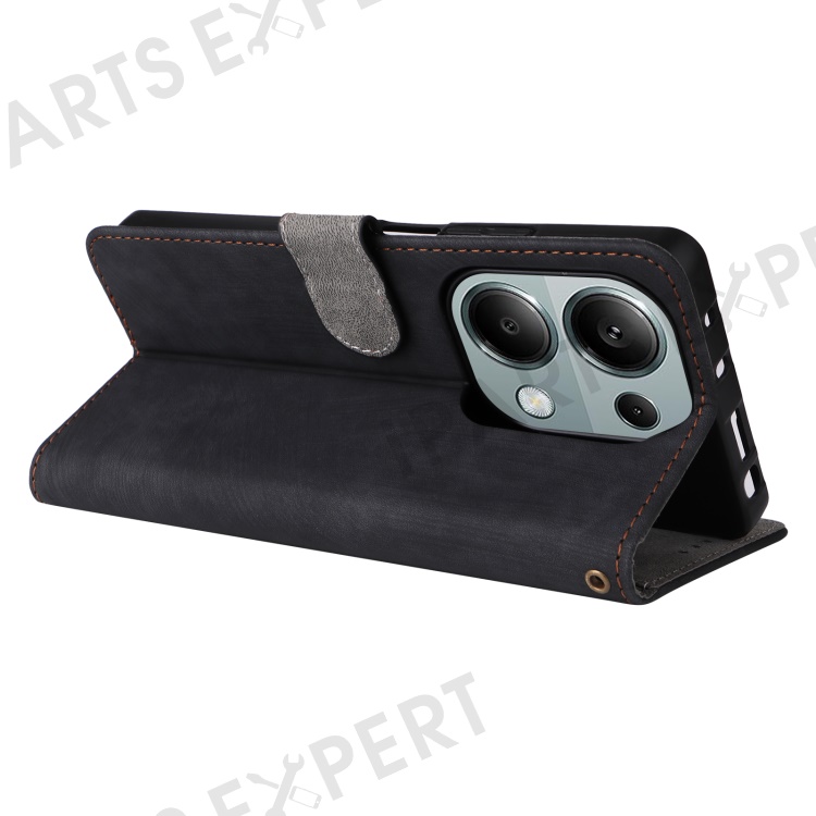 For Xiaomi Redmi Note 13 Pro 4G / Poco M6 Pro 4G / Note 14S 4G Case with Strap RFID Blocking PU Leather Cover Stand - Black