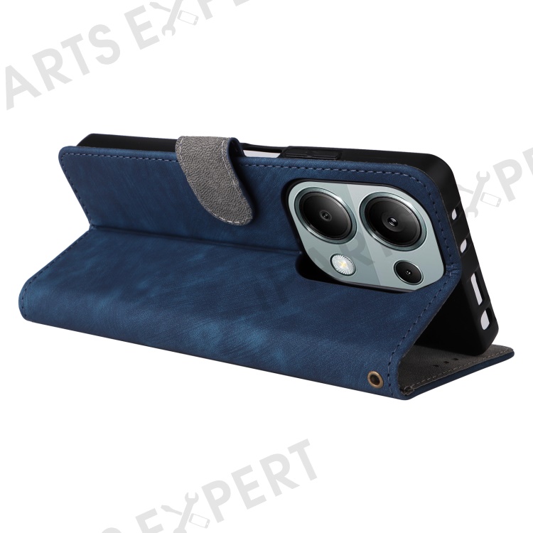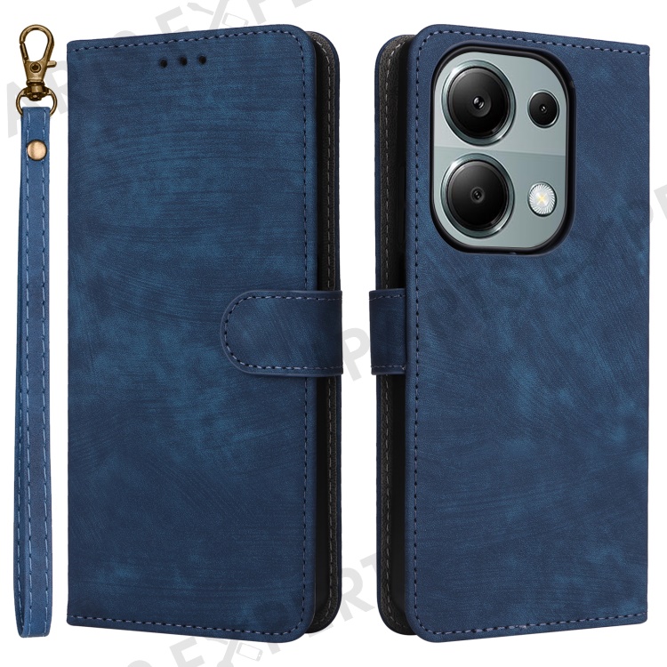 For Xiaomi Redmi Note 13 Pro 4G / Poco M6 Pro 4G / Note 14S 4G Case with Strap RFID Blocking PU Leather Cover Stand - Blue