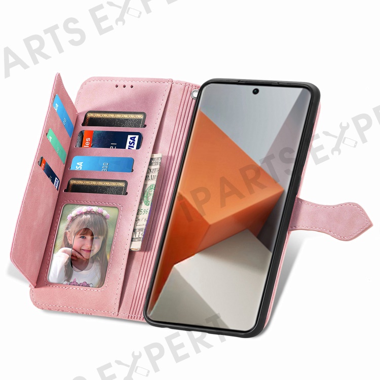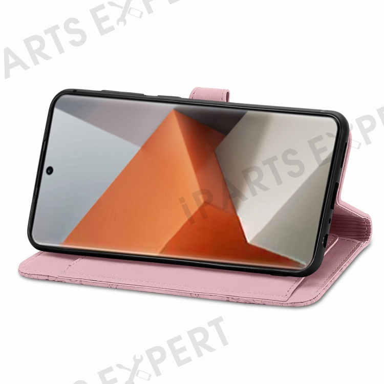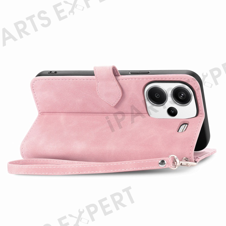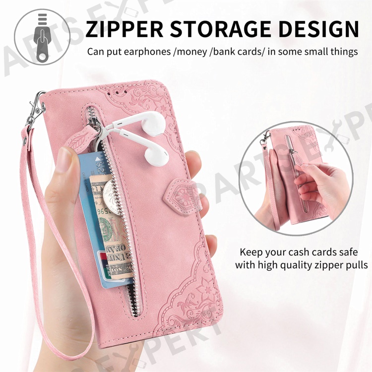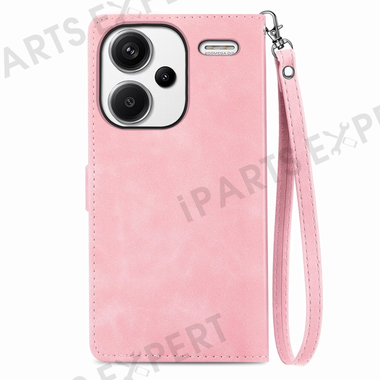 For Xiaomi Redmi Note 13 Pro+ 5G Zipper Wallet Case with Strap Flower Imprint PU Leather Phone Cover - Pink