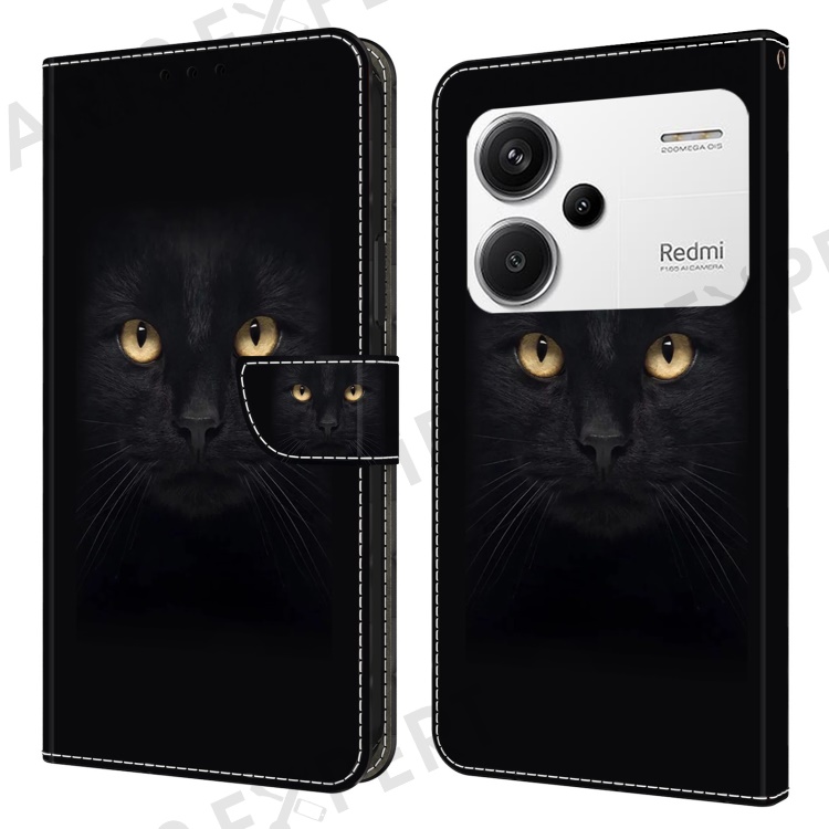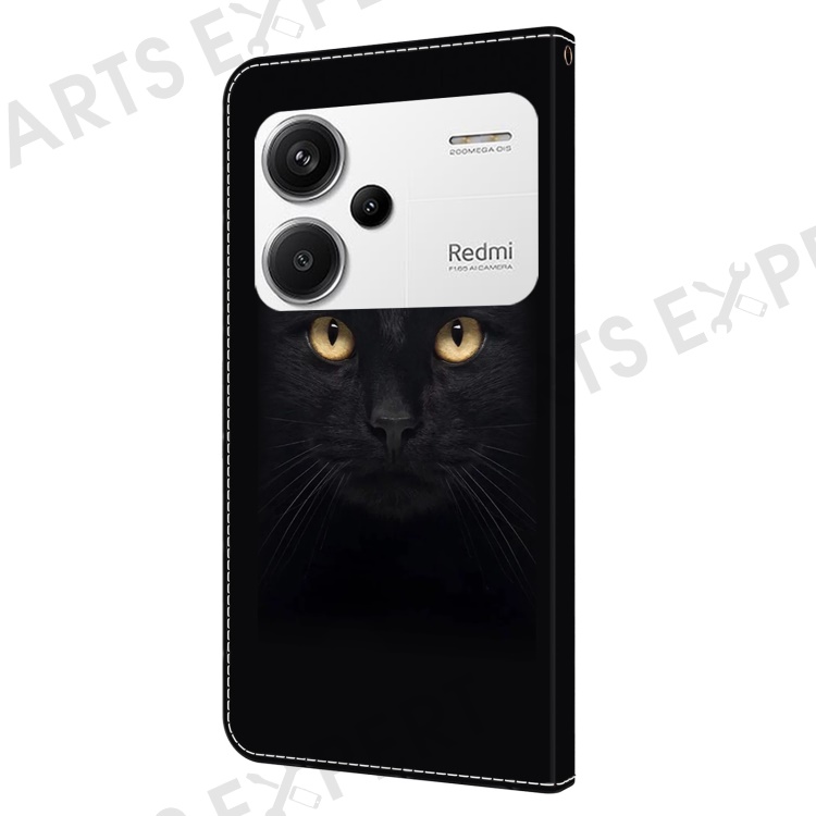 For Xiaomi Redmi Note 13 Pro+ 5G Leather Case 3D Creative Pattern Design Flip Stand Phone Cover - Black Cat