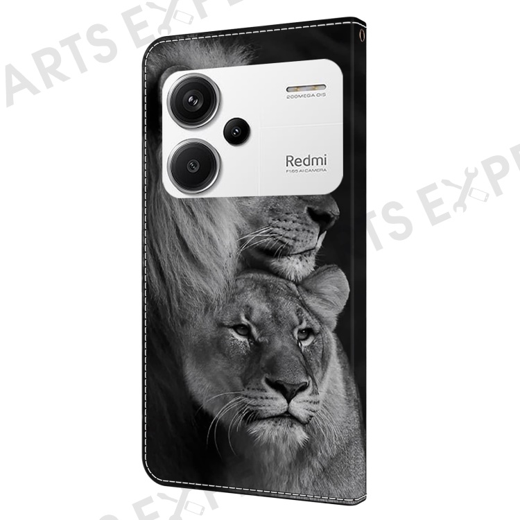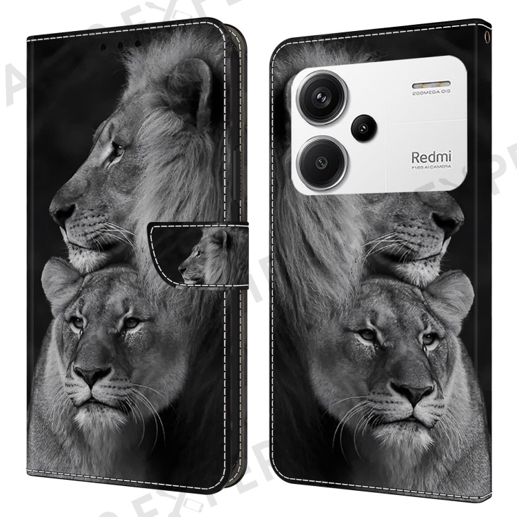 For Xiaomi Redmi Note 13 Pro+ 5G Leather Case 3D Creative Pattern Design Flip Stand Phone Cover - Couple Lions
