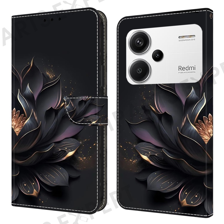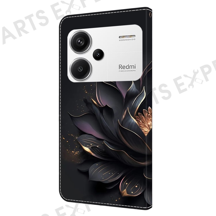 For Xiaomi Redmi Note 13 Pro+ 5G Leather Case 3D Creative Pattern Design Flip Stand Phone Cover - Purple Lotus