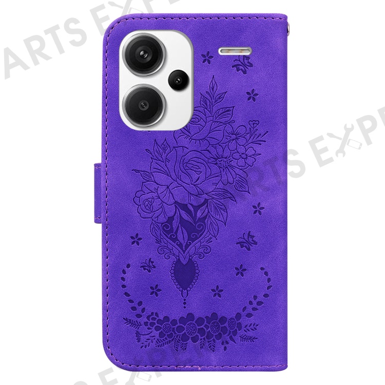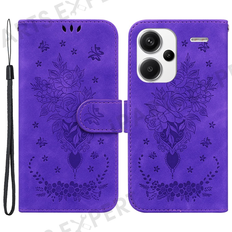 For Xiaomi Redmi Note 13 Pro+ 5G Magnetic Phone Case Rose Butterfly Imprinted Cover - Purple