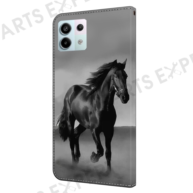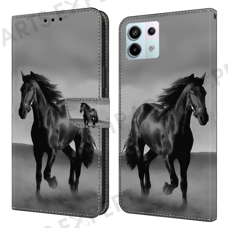 For Xiaomi Redmi Note 13 Pro 5G / Poco X6 5G Case 3D Pattern Flip Wallet PU Leather Phone Cover - Black Horse