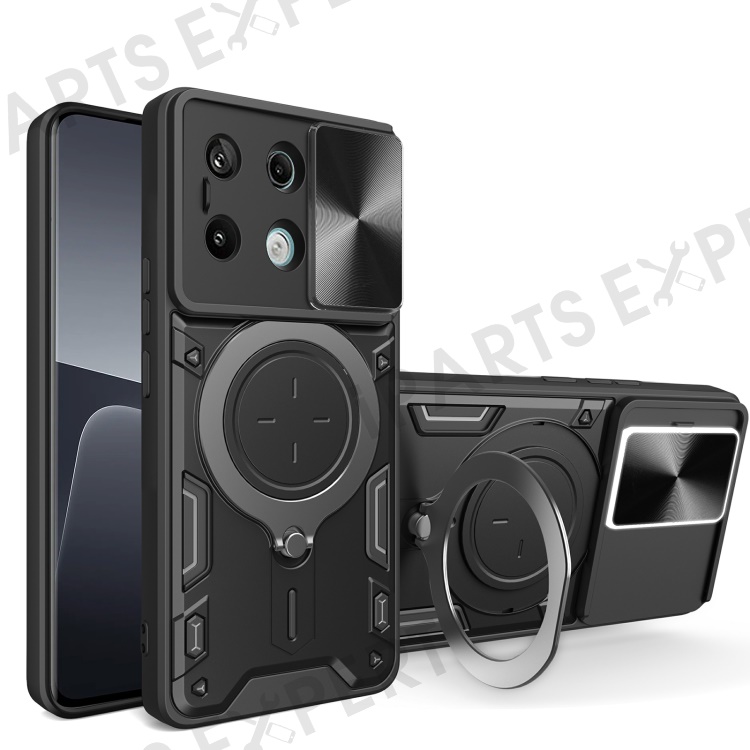 For Xiaomi Redmi Note 13 Pro 5G / Poco X6 5G Case Kickstand TPU+PC Phone Cover with Slide Lens Lid - Black