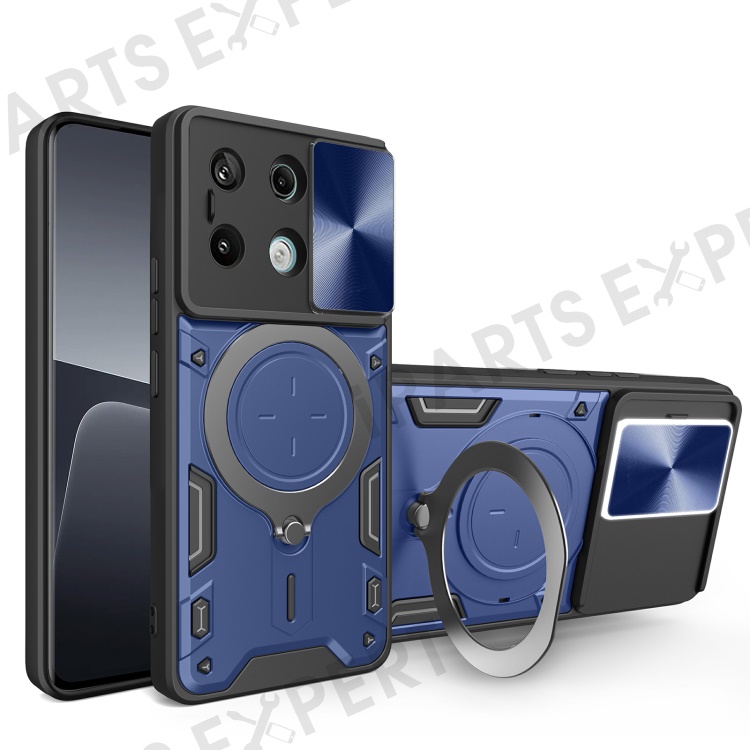 For Xiaomi Redmi Note 13 Pro 5G / Poco X6 5G Case Kickstand TPU+PC Phone Cover with Slide Lens Lid - Blue
