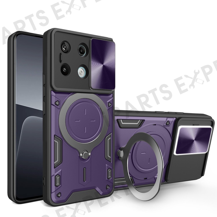 For Xiaomi Redmi Note 13 Pro 5G / Poco X6 5G Case Kickstand TPU+PC Phone Cover with Slide Lens Lid - Purple