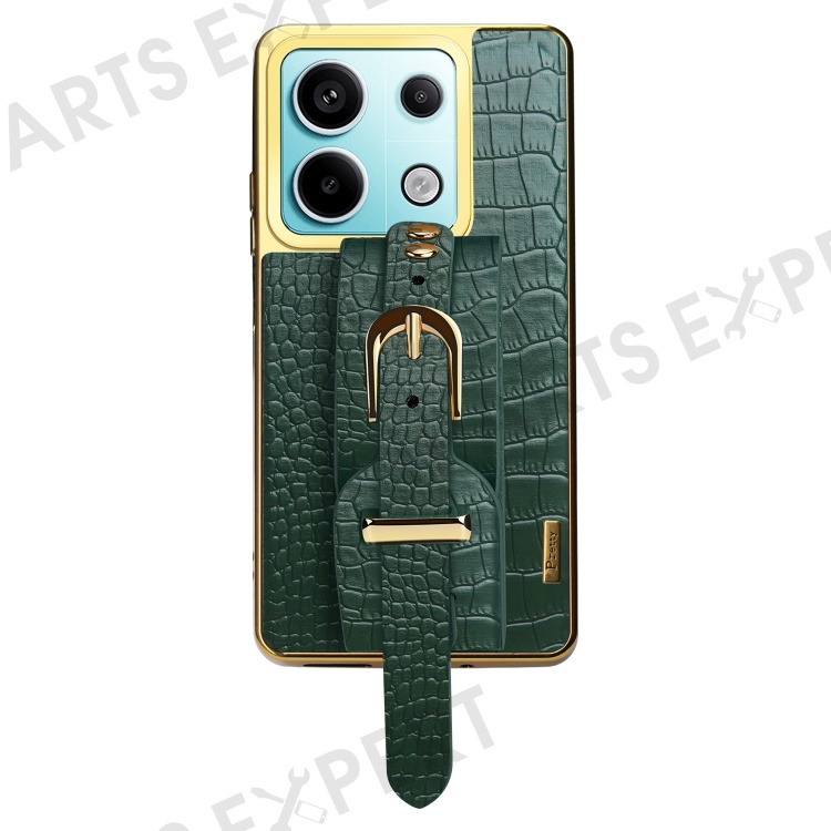 For Xiaomi Redmi Note 13 Pro 5G / Poco X6 5G Case Leather+TPU Anti-scratch Phone Cover with Wristband - Green