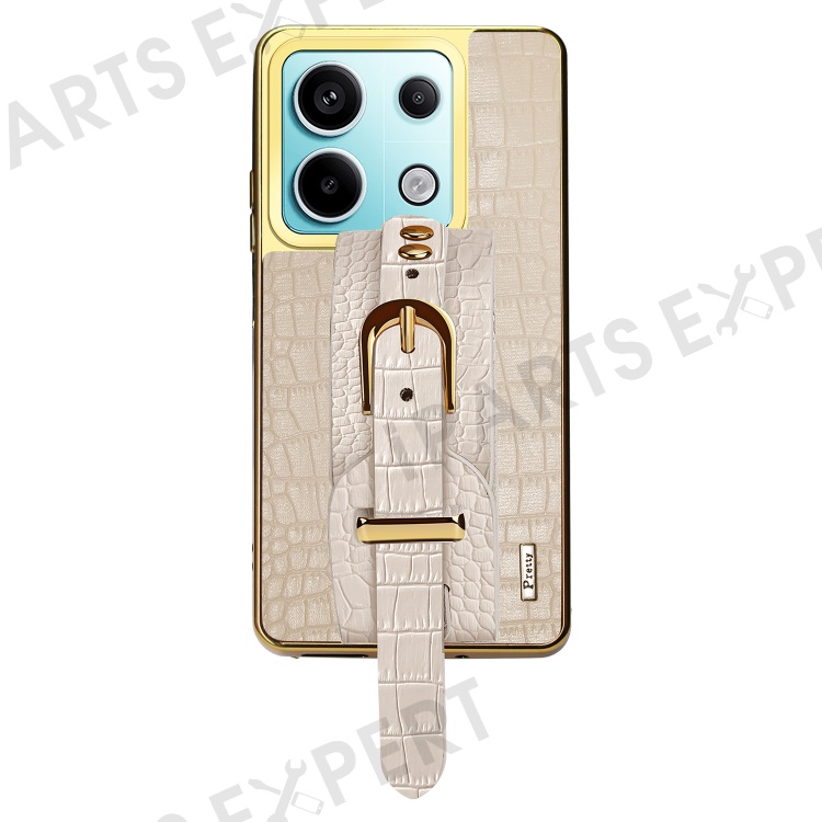 For Xiaomi Redmi Note 13 Pro 5G / Poco X6 5G Case Leather+TPU Anti-scratch Phone Cover with Wristband - White