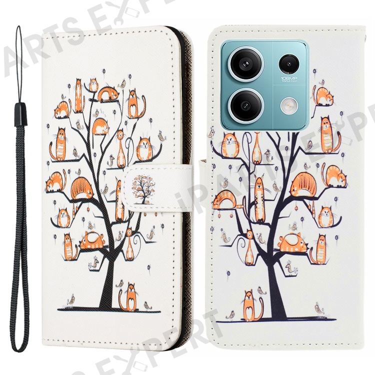 For Xiaomi Redmi Note 13 Pro 5G / Poco X6 5G Phone Case 3D Pattern Leather Wallet Cover - Cat and Tree