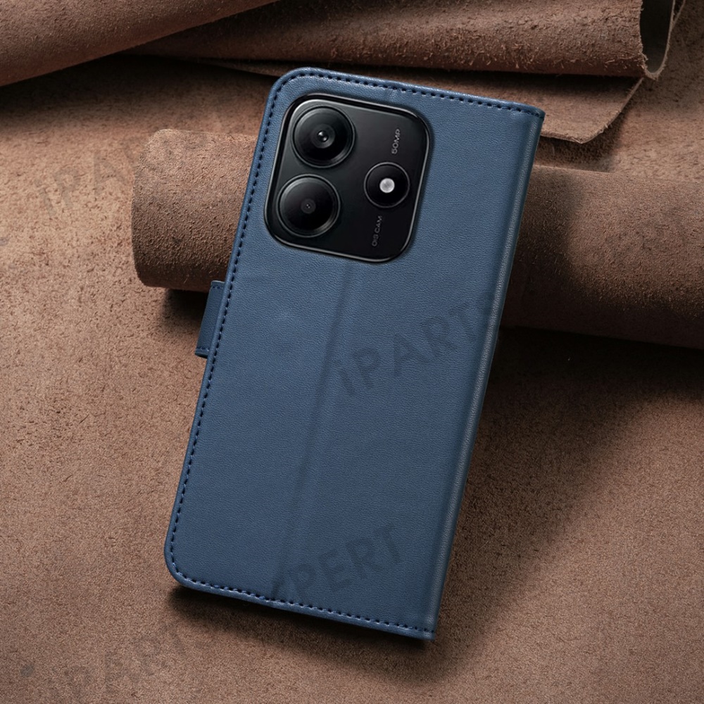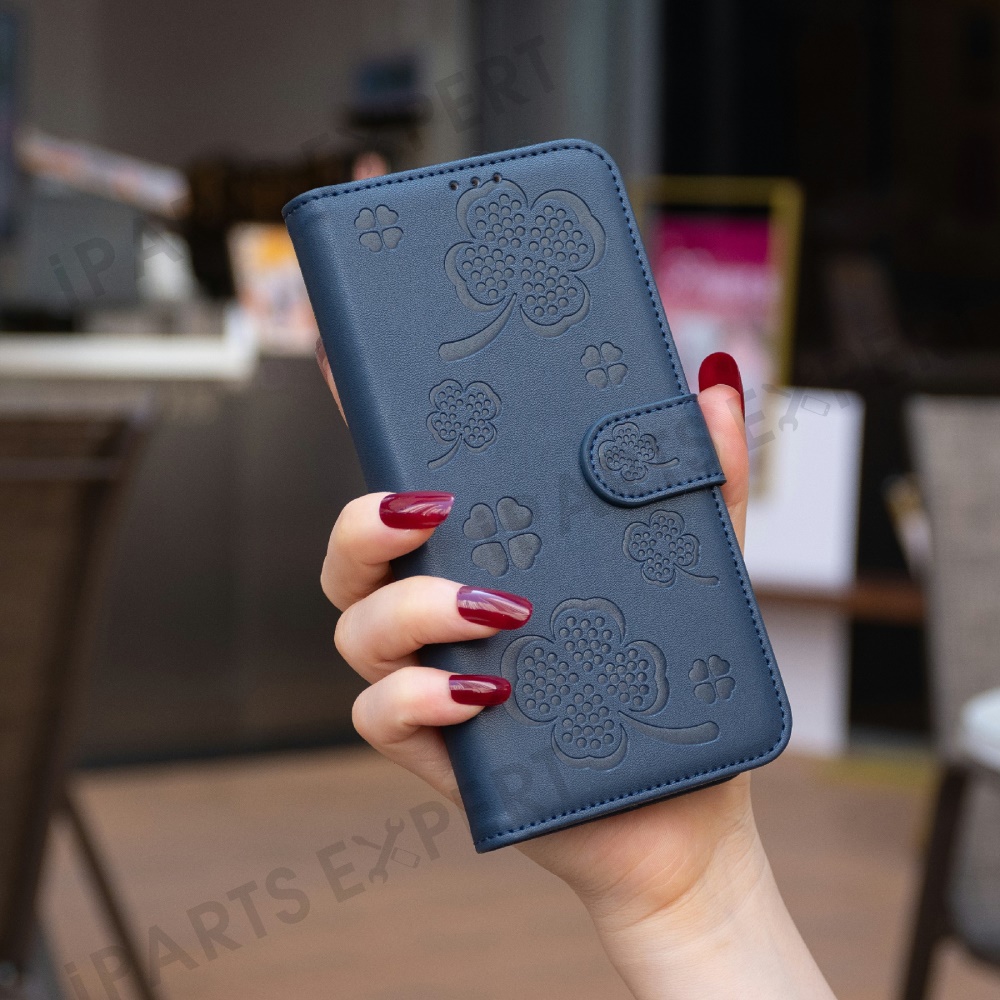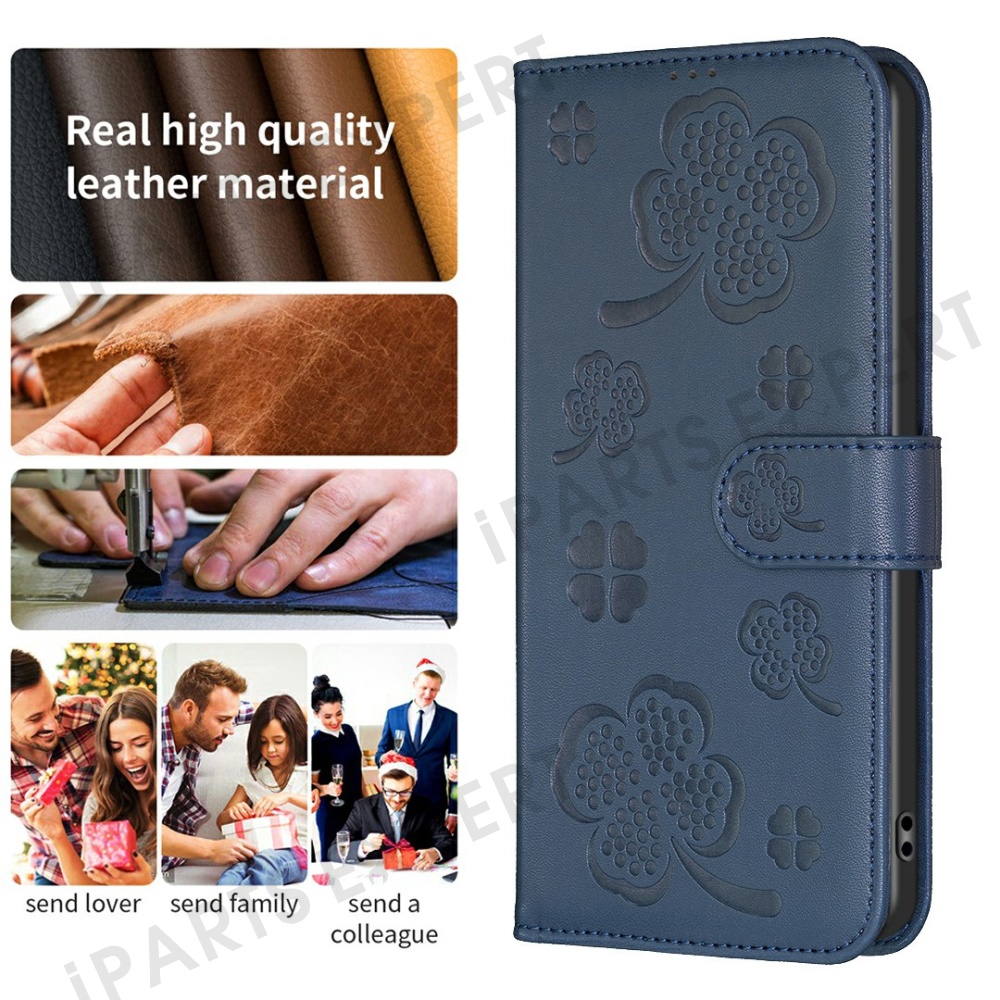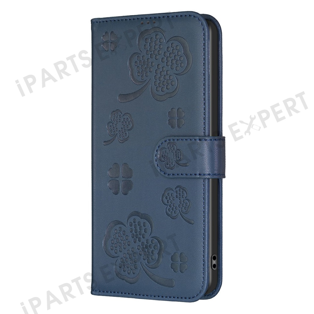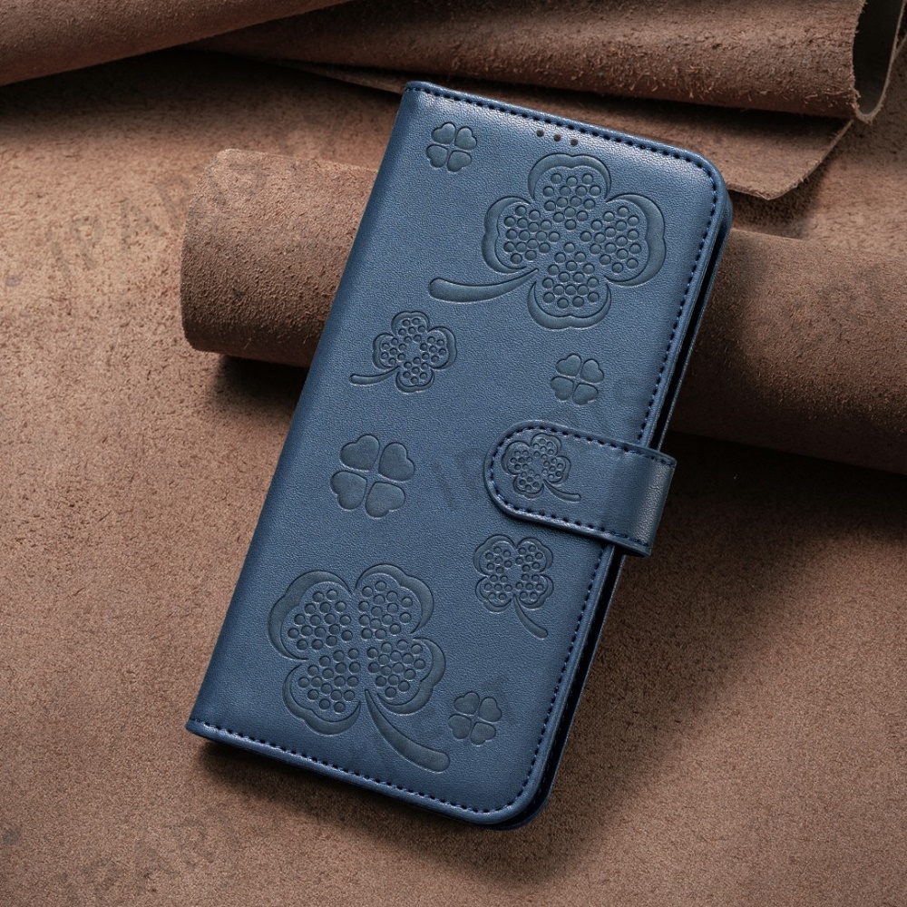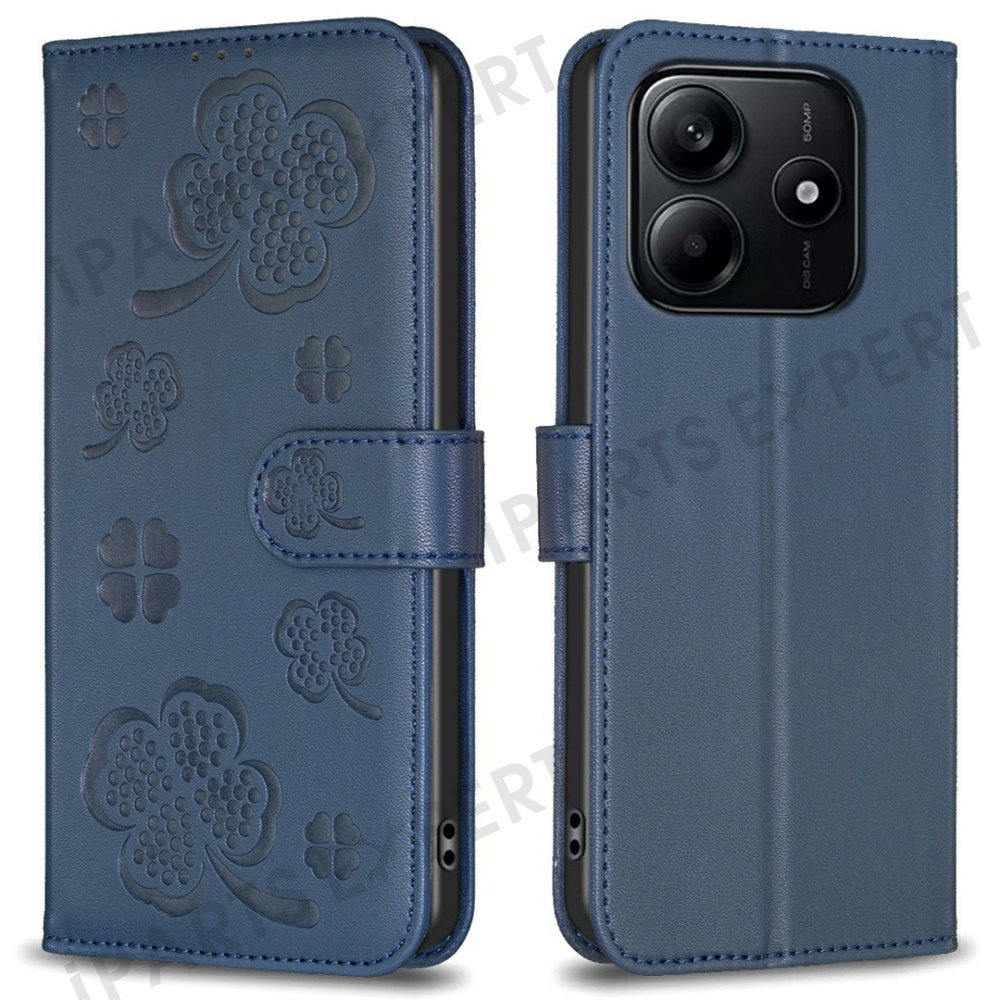 For Xiaomi Redmi Note 14 4G (163.25mm) Case Clover Pattern Wallet Stand View Leather Phone Cover - Blue
