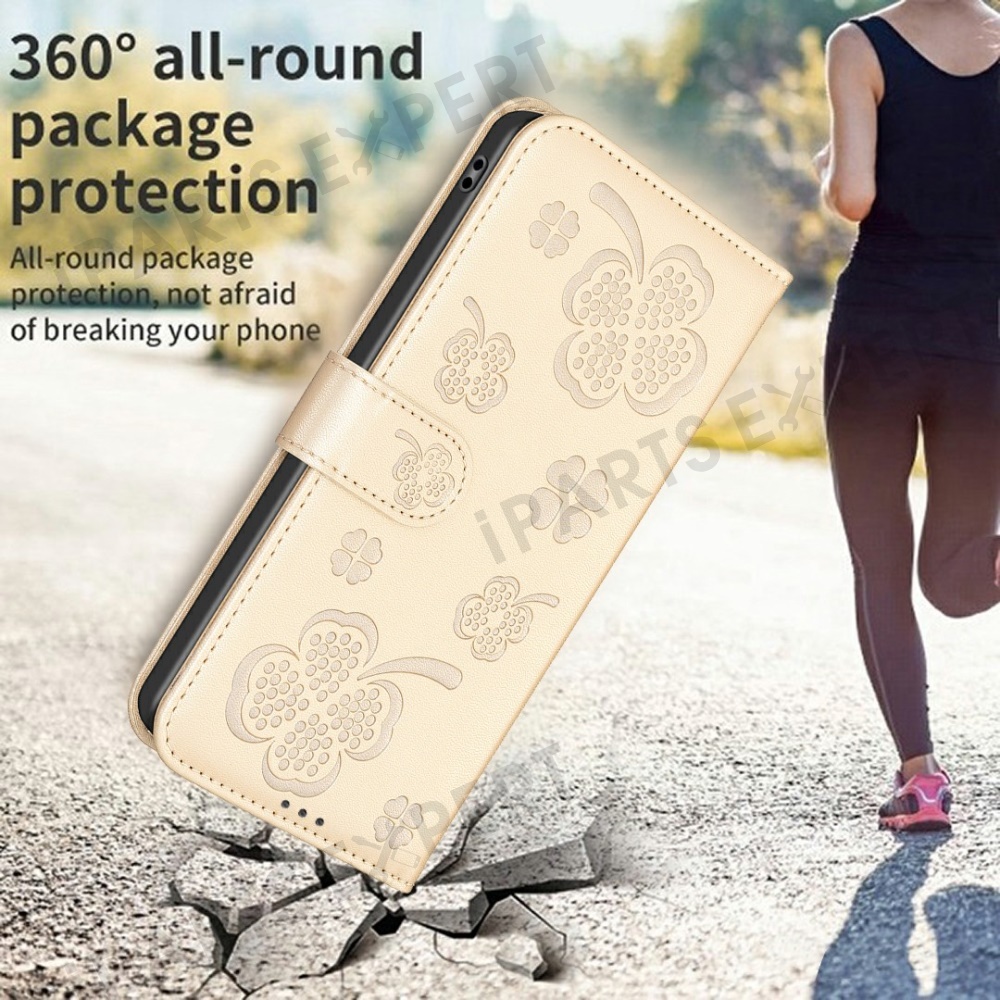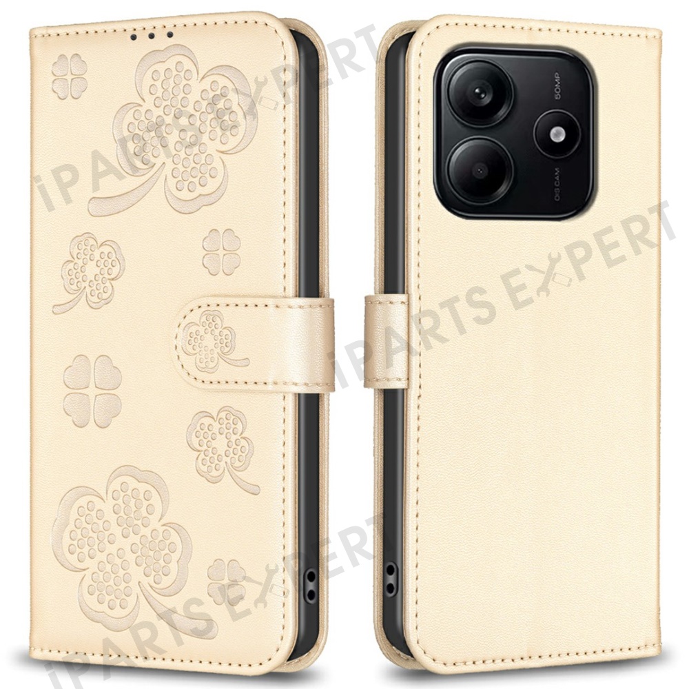 For Xiaomi Redmi Note 14 4G (163.25mm) Case Clover Pattern Wallet Stand View Leather Phone Cover - Gold