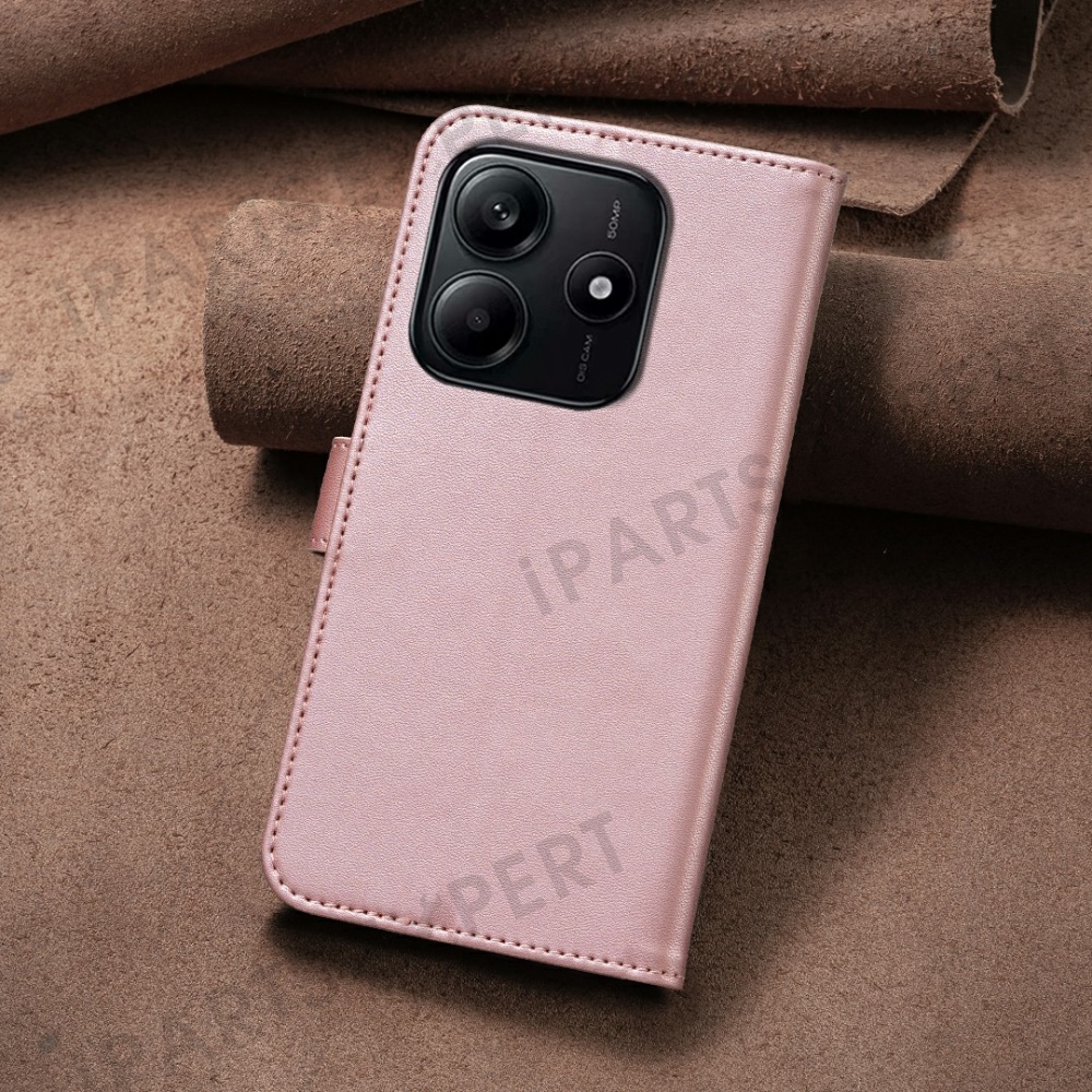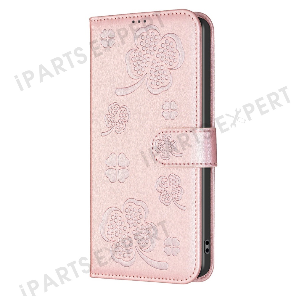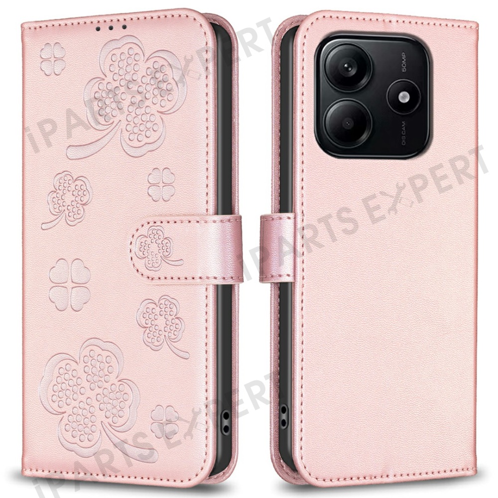 For Xiaomi Redmi Note 14 4G (163.25mm) Case Clover Pattern Wallet Stand View Leather Phone Cover - Pink