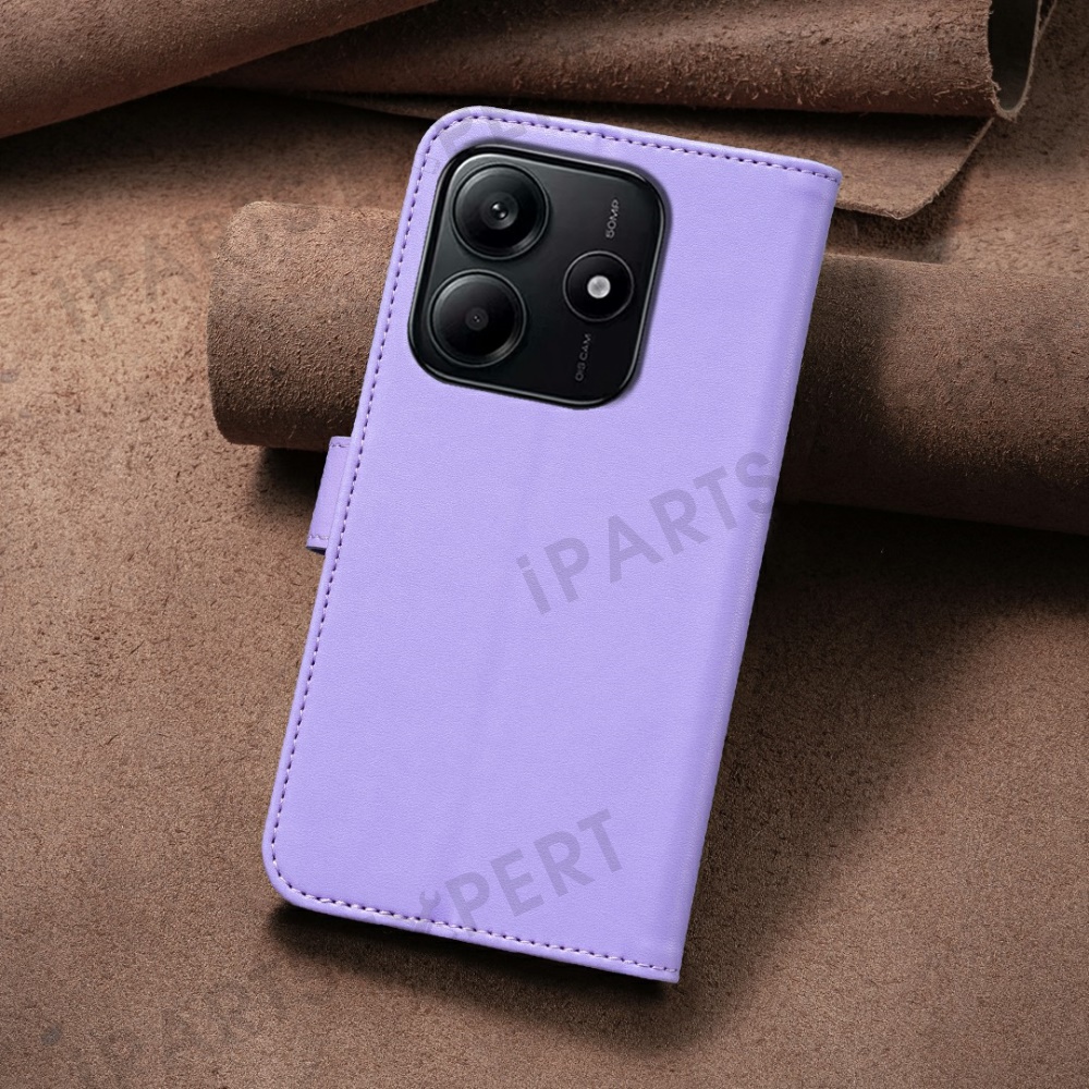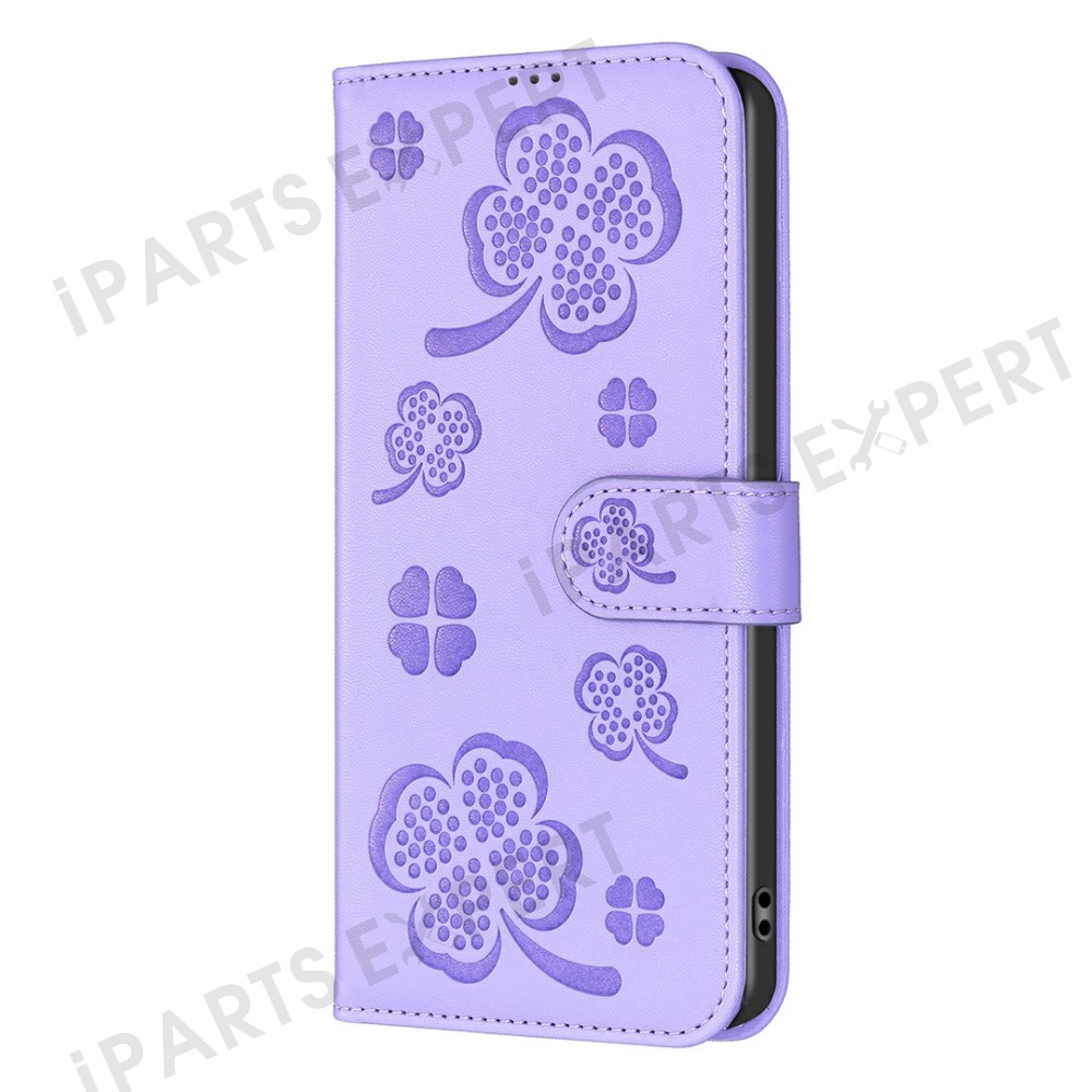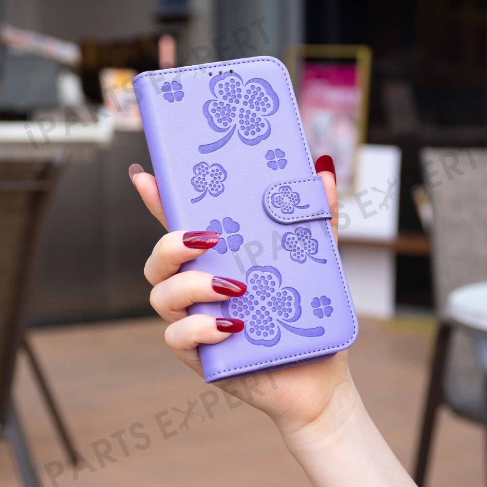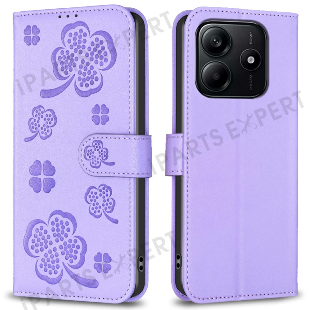For Xiaomi Redmi Note 14 4G (163.25mm) Case Clover Pattern Wallet Stand View Leather Phone Cover - Purple