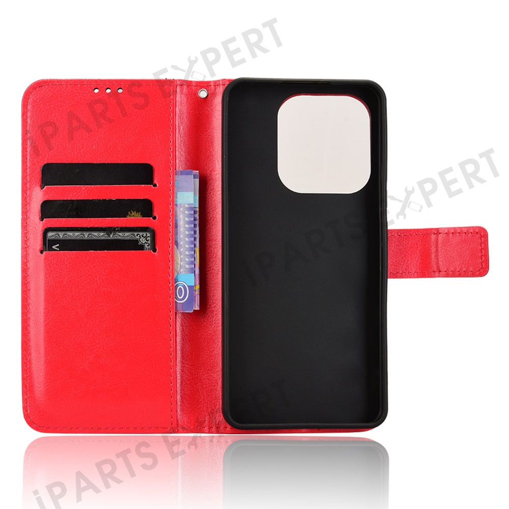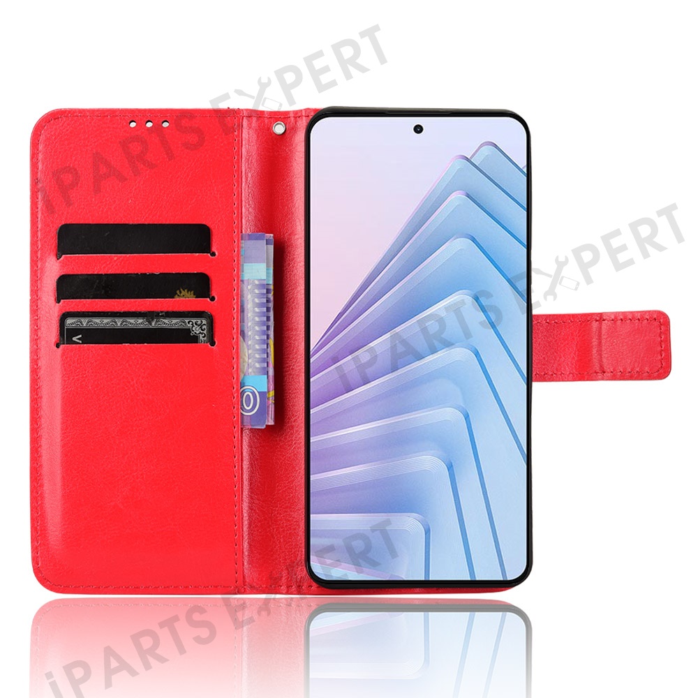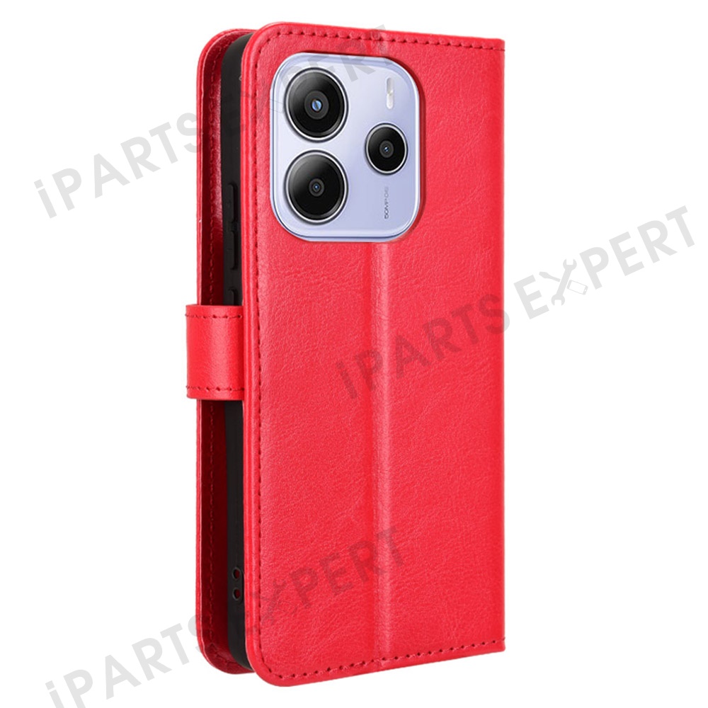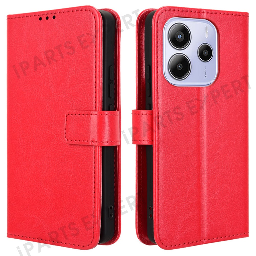 For Xiaomi Redmi Note 14 4G (163.25mm) Case Crazy Horse Texture PU Leather Phone Wallet Cover - Red