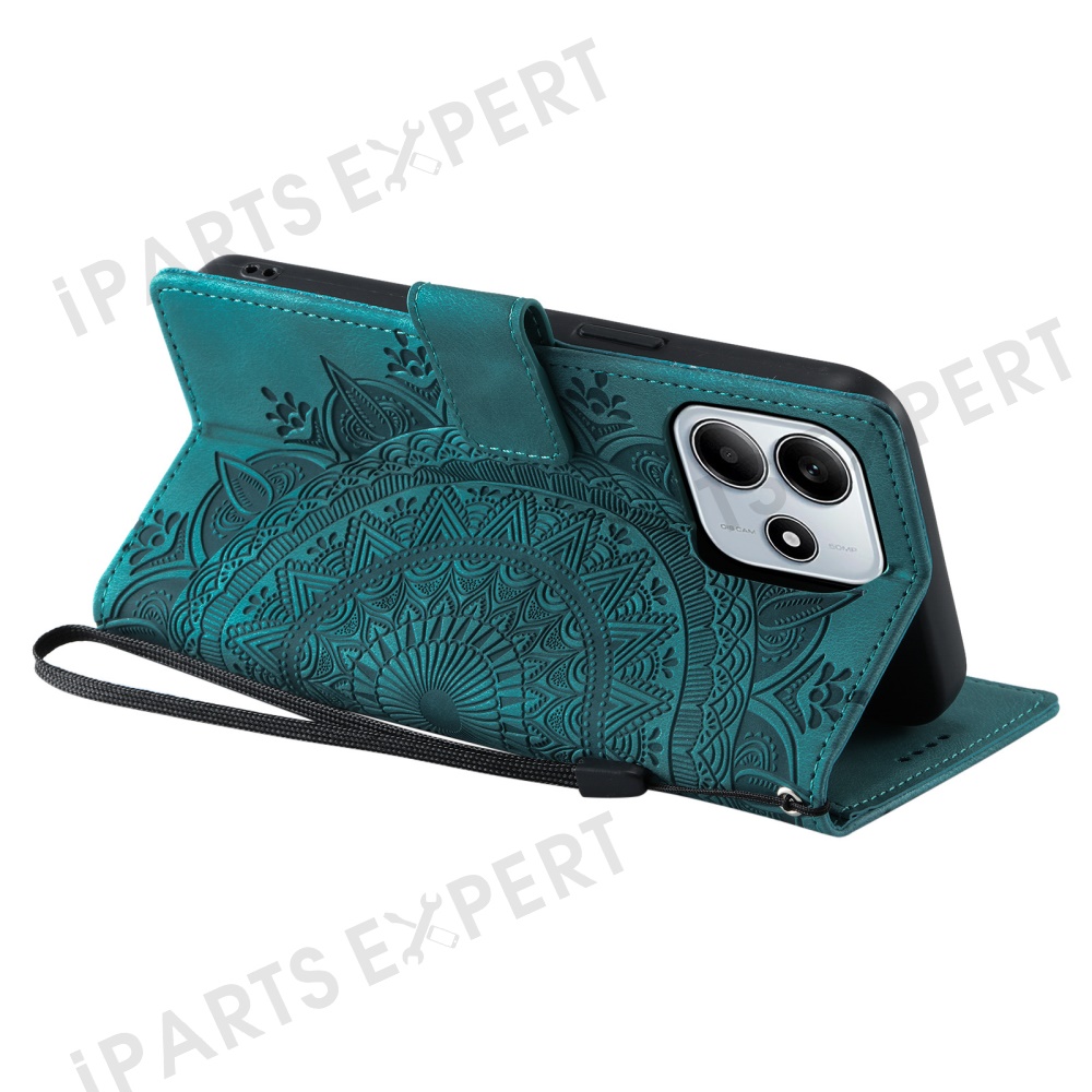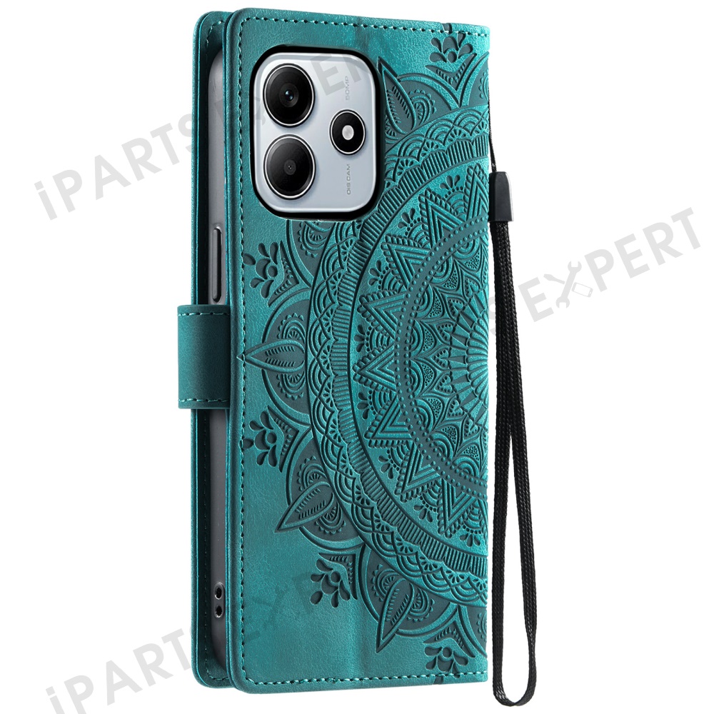 For Xiaomi Redmi Note 14 4G (163.25mm) Case Imprinted Totem Skin Feel Wallet Leather Phone Cover - Green