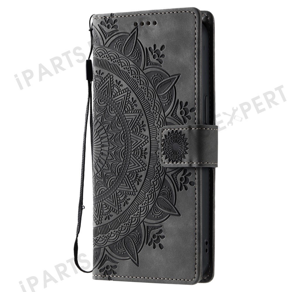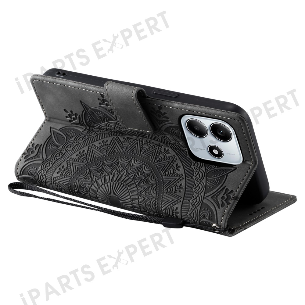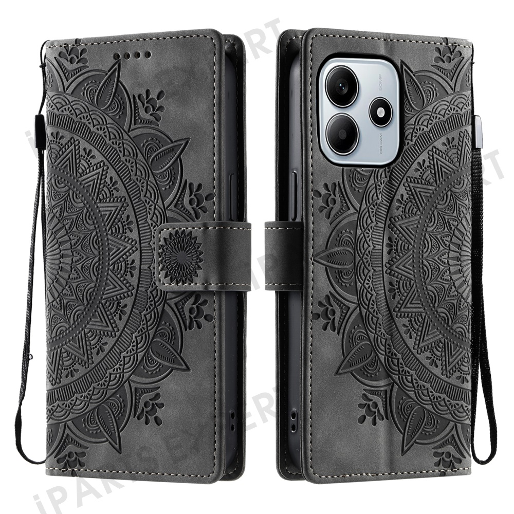 For Xiaomi Redmi Note 14 4G (163.25mm) Case Imprinted Totem Skin Feel Wallet Leather Phone Cover - Grey