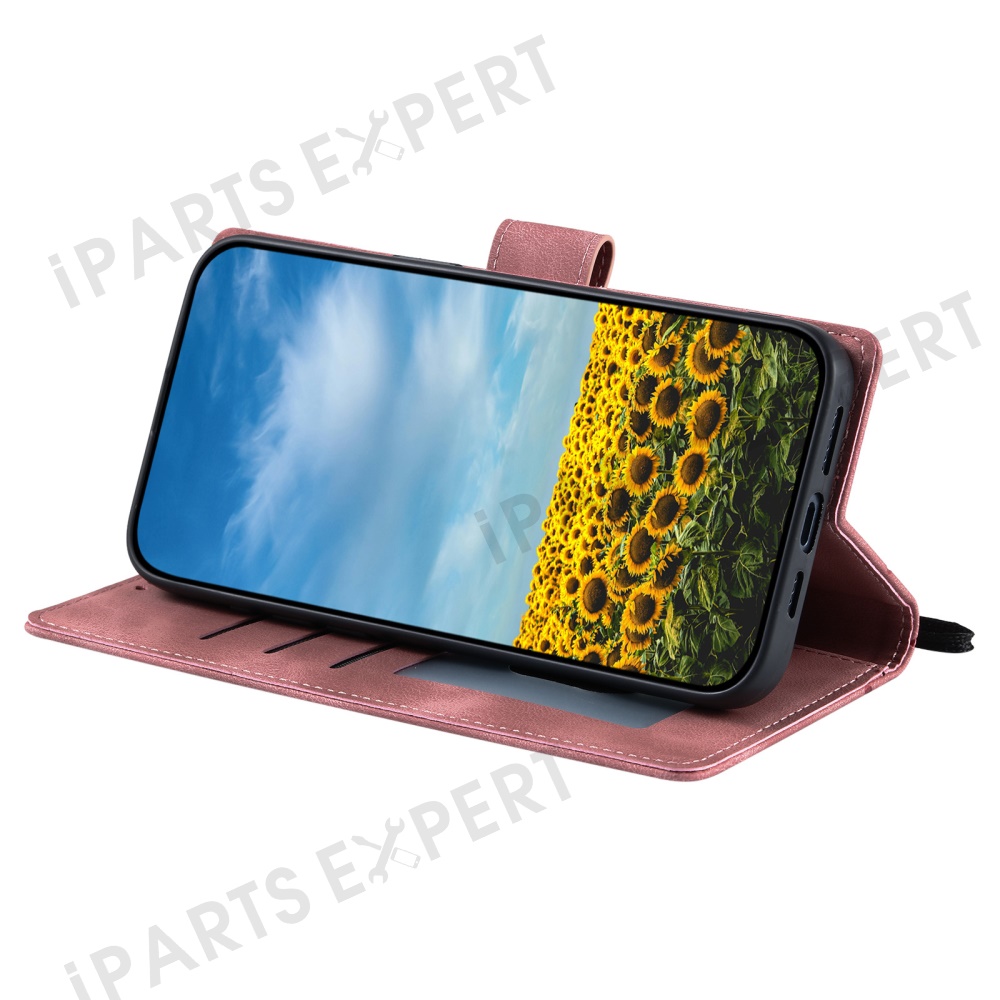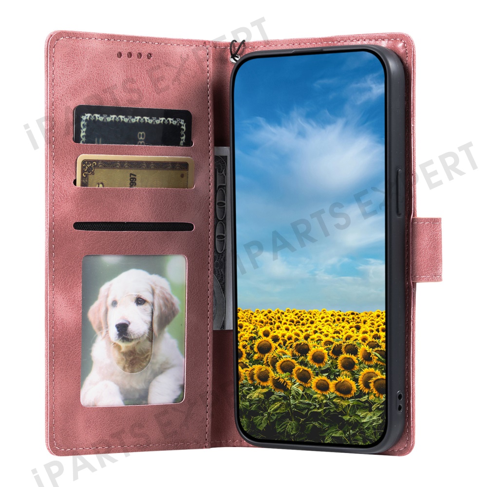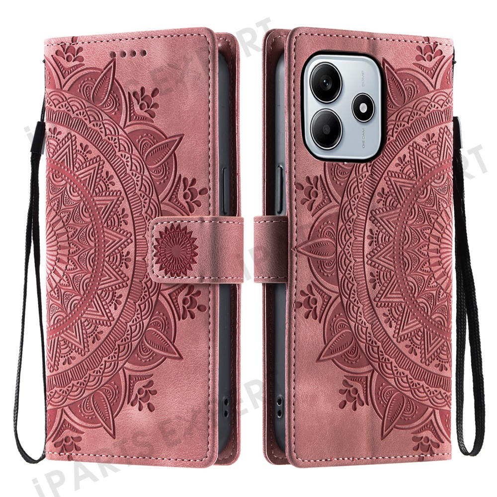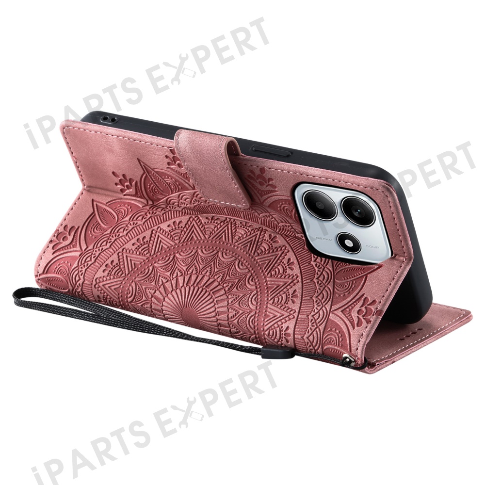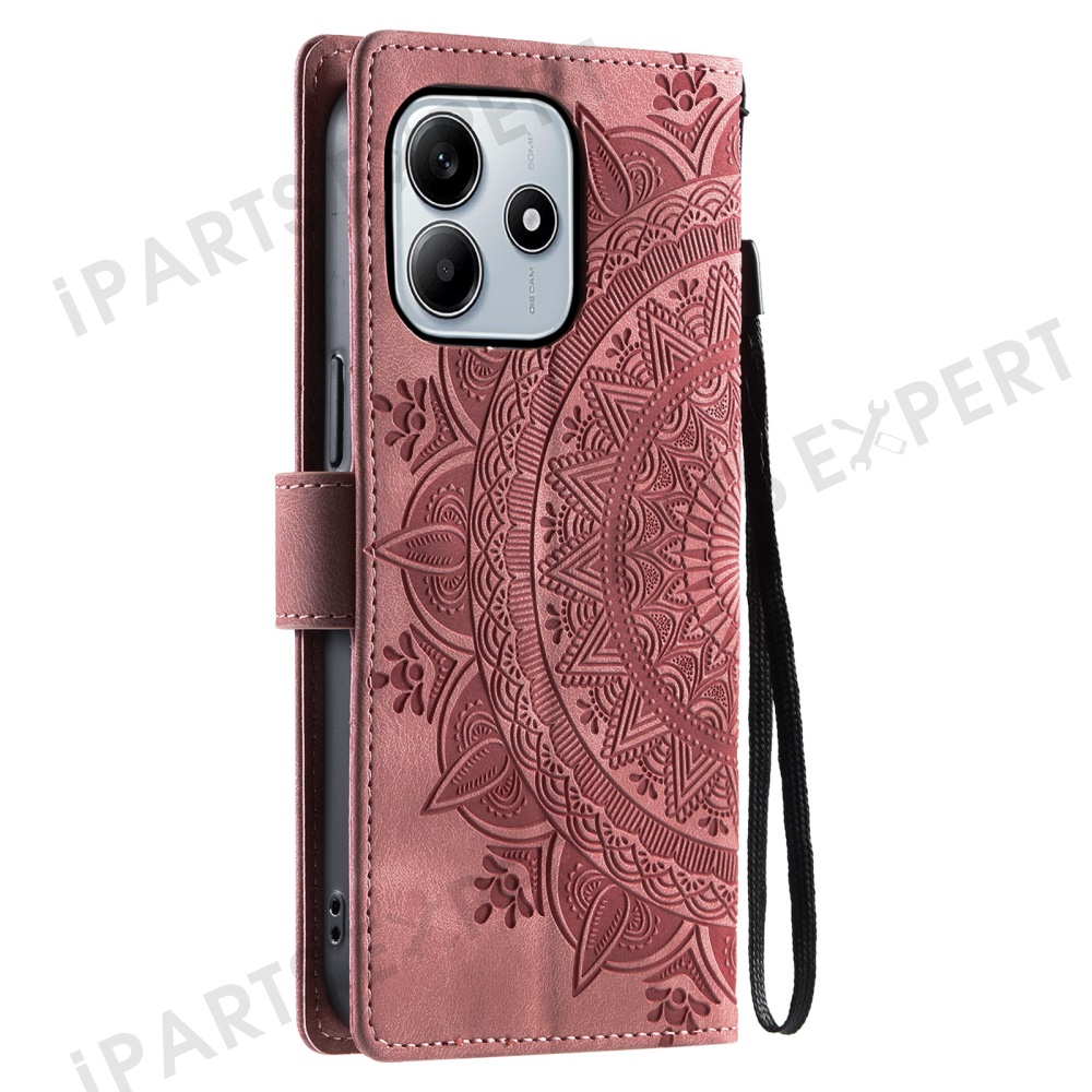 For Xiaomi Redmi Note 14 4G (163.25mm) Case Imprinted Totem Skin Feel Wallet Leather Phone Cover - Rose Gold