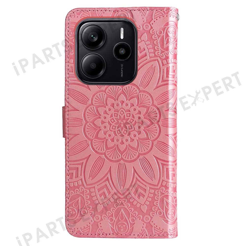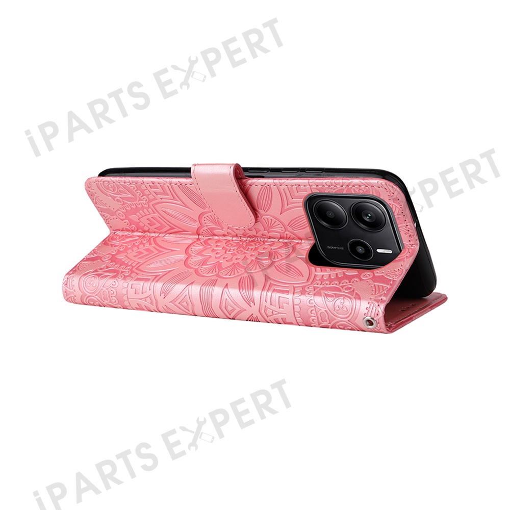 For Xiaomi Redmi Note 14 4G (163.25mm) Case Sunflower Imprint Leather Wallet Phone Cover - Pink