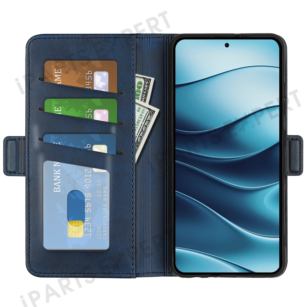 For Xiaomi Redmi Note 14 4G (163.25mm) Stand Case Calf Texture Leather Wallet Phone Cover - Blue
