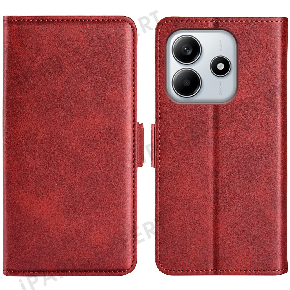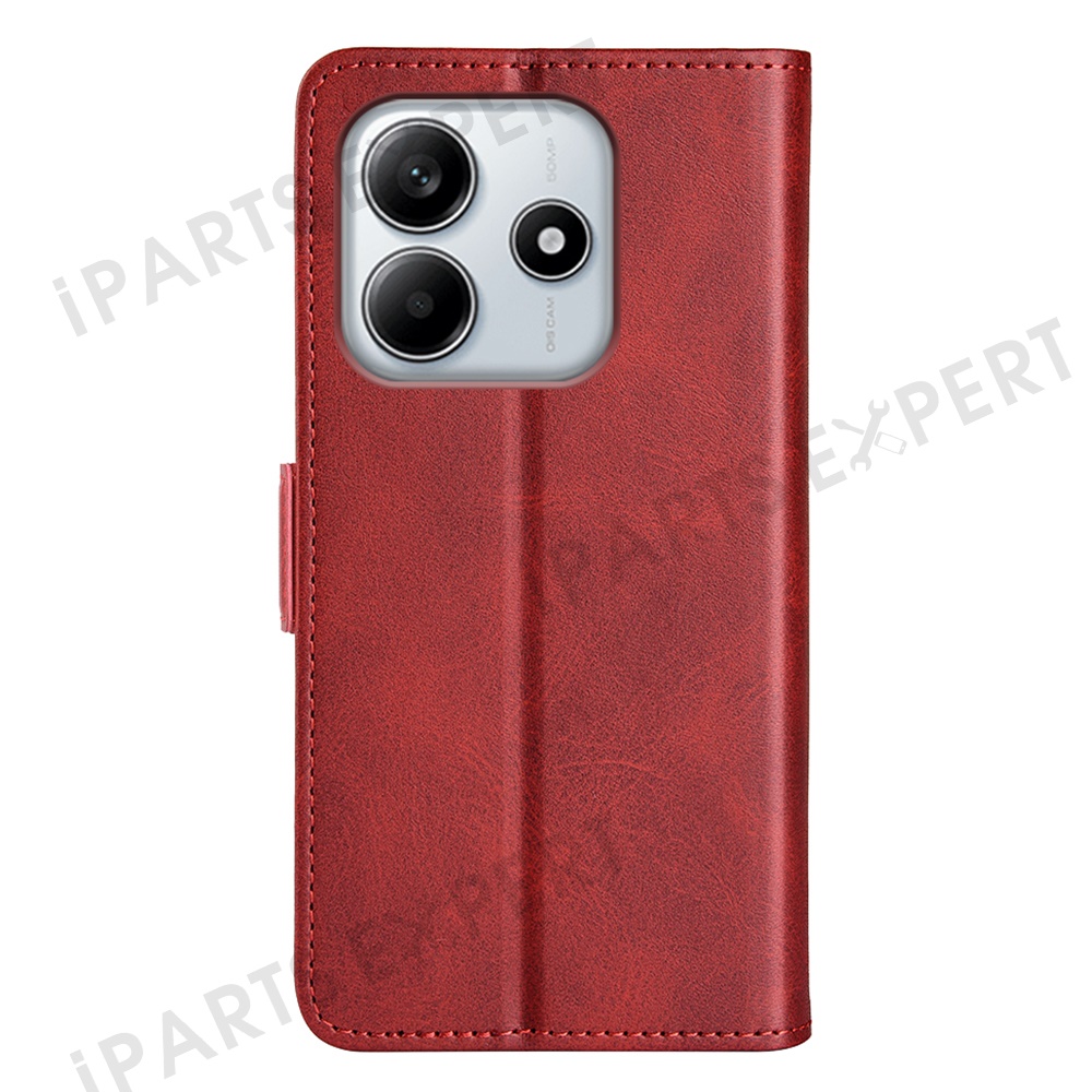 For Xiaomi Redmi Note 14 4G (163.25mm) Stand Case Calf Texture Leather Wallet Phone Cover - Red