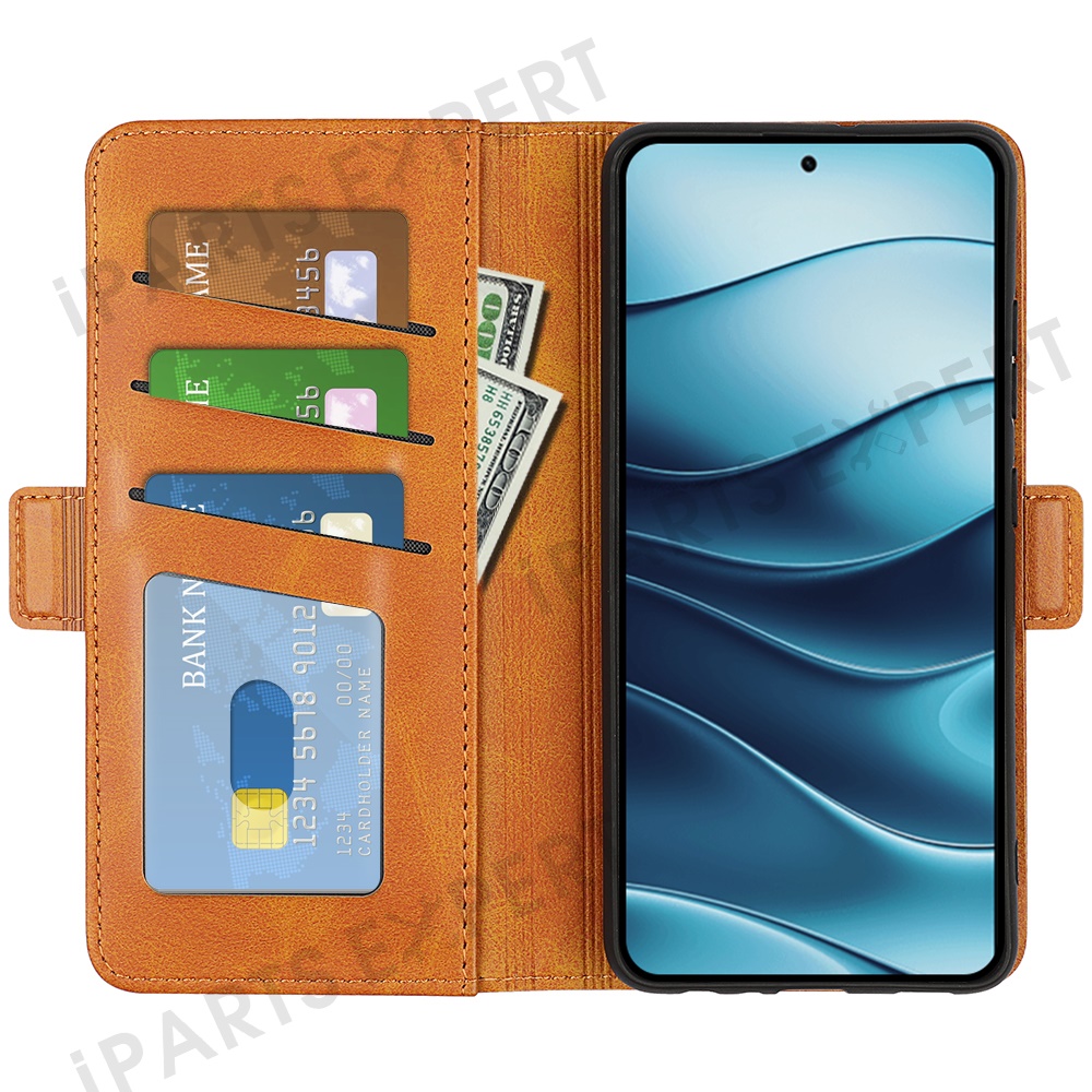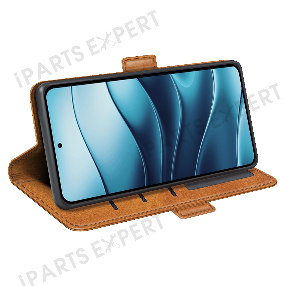 For Xiaomi Redmi Note 14 4G (163.25mm) Stand Case Calf Texture Leather Wallet Phone Cover - Yellow