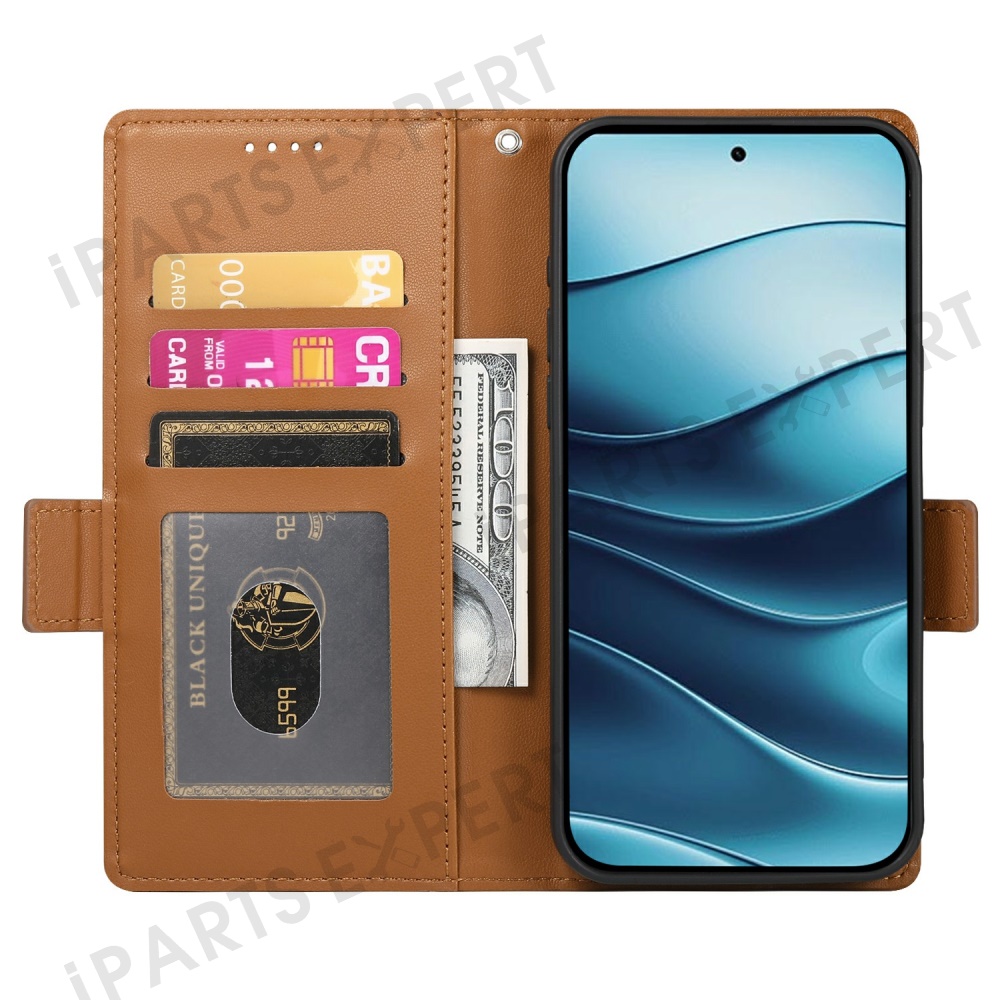 For Xiaomi Redmi Note 14 4G (163.25mm) Stand Case PU Leather Wallet Phone Cover - Brown