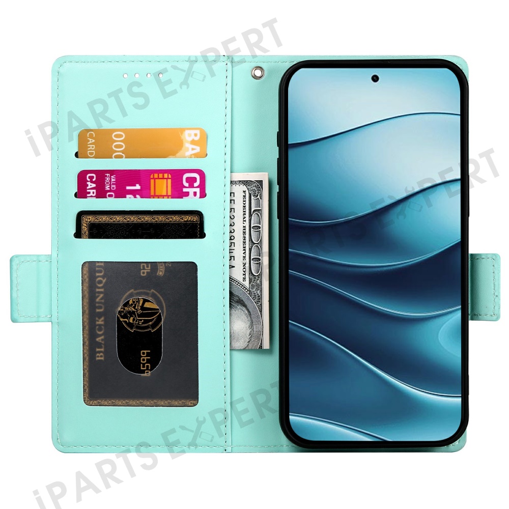 For Xiaomi Redmi Note 14 4G (163.25mm) Stand Case PU Leather Wallet Phone Cover - Mint Green