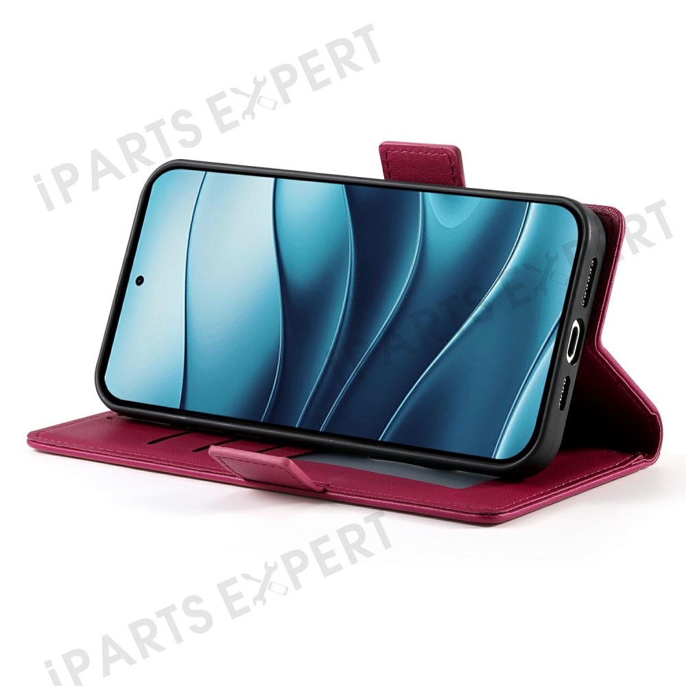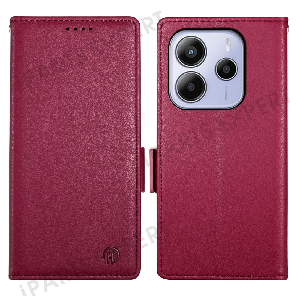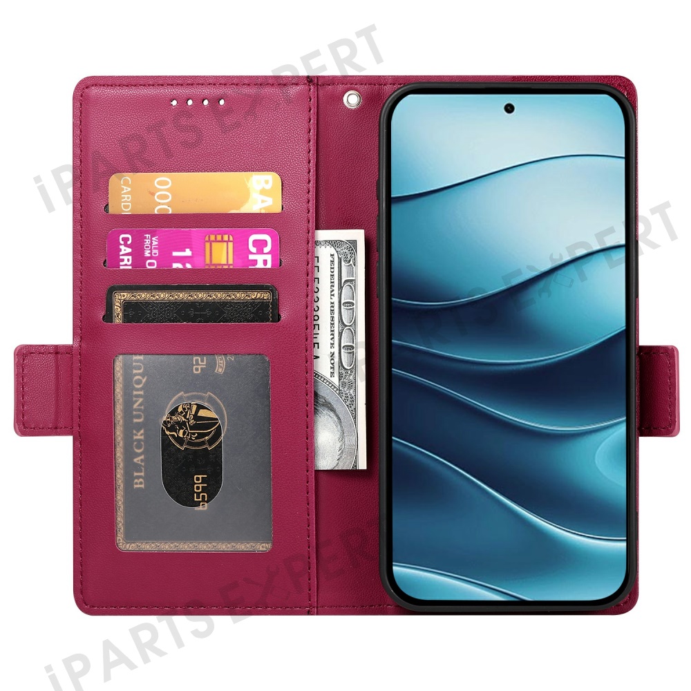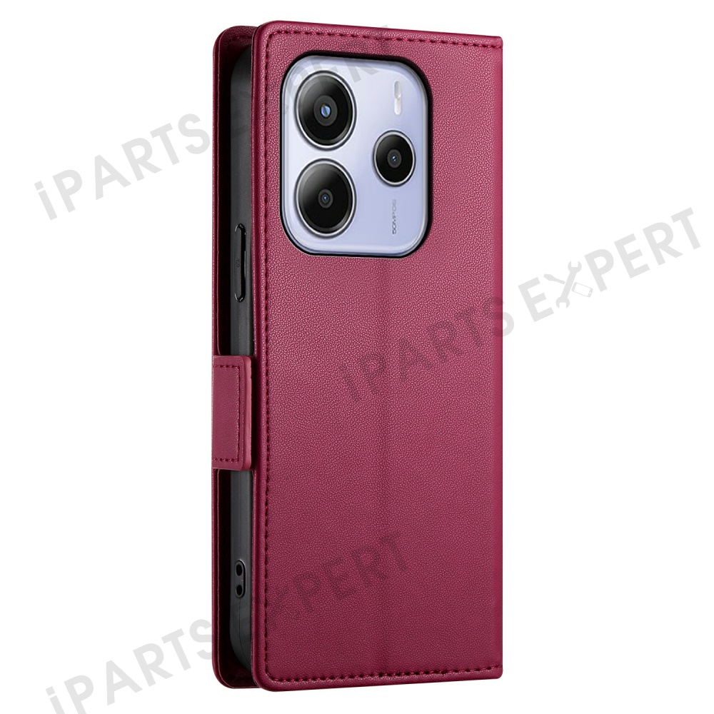 For Xiaomi Redmi Note 14 4G (163.25mm) Stand Case PU Leather Wallet Phone Cover - Wine Red