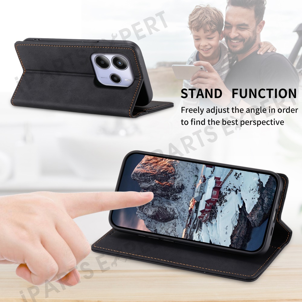 For Xiaomi Redmi Note 14 4G (163.25mm) Wallet Case RFID Blocking PU Leather Phone Cover - Black