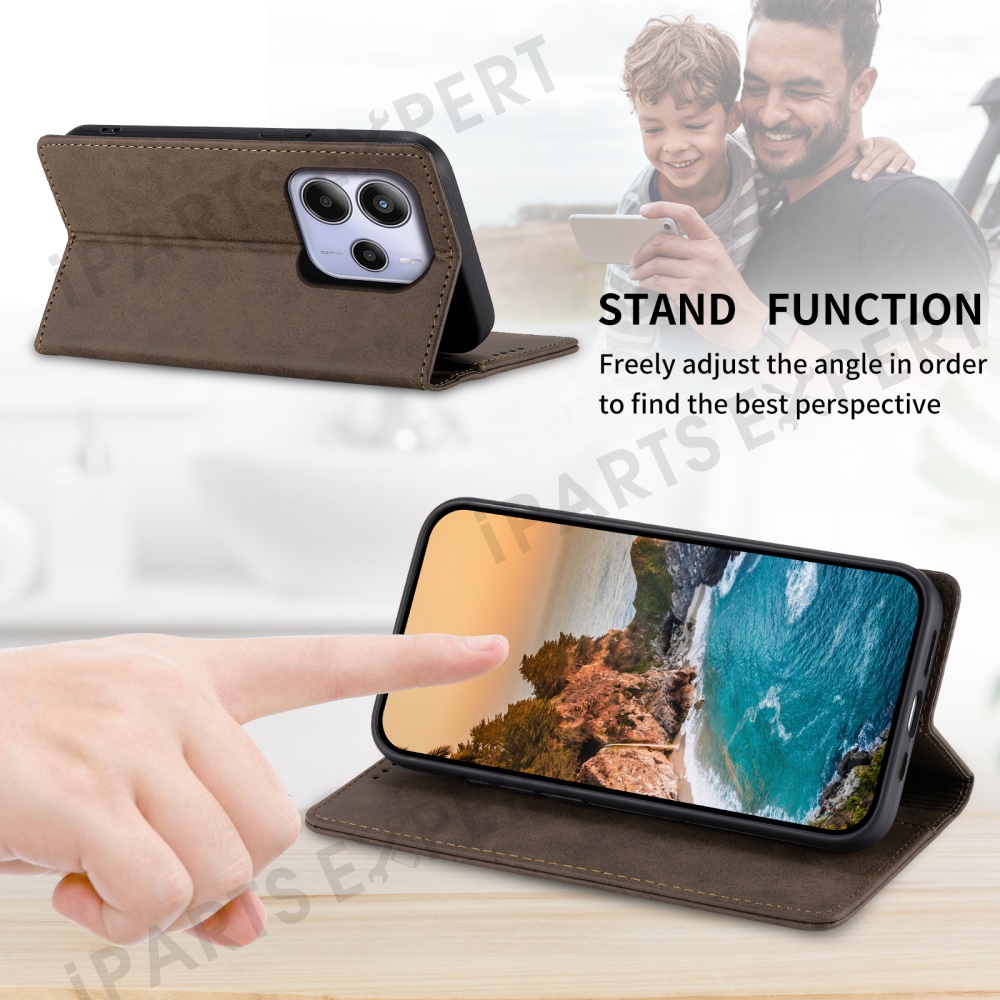 For Xiaomi Redmi Note 14 4G (163.25mm) Wallet Case RFID Blocking PU Leather Phone Cover - Brown