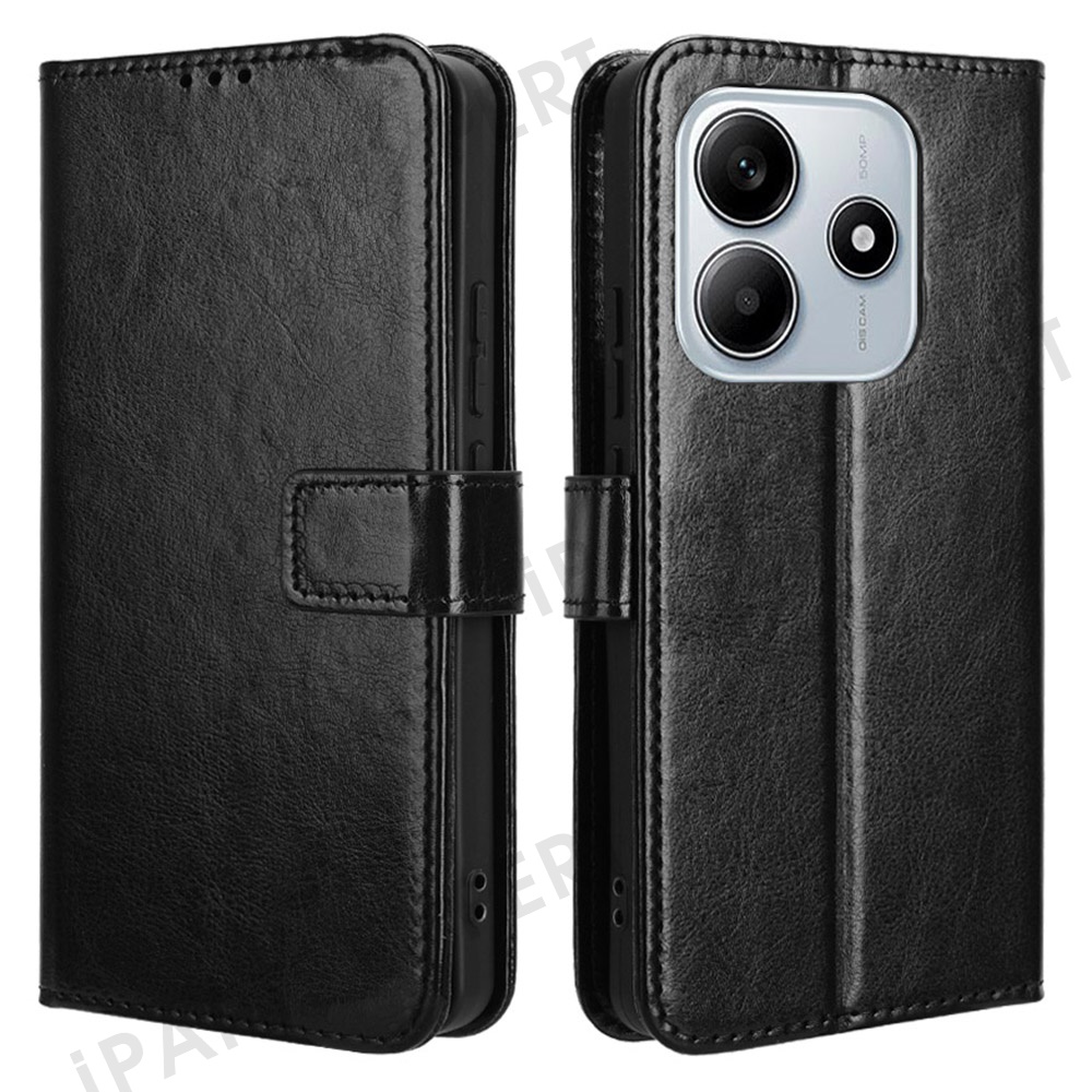 For Xiaomi Redmi Note 14 5G Case Crazy Horse Texture PU Leather Phone Wallet Cover - Black