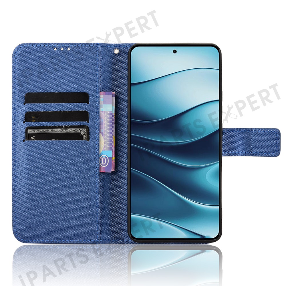 For Xiaomi Redmi Note 14 5G Case PU Leather Diamond Texture Wallet Phone Cover - Blue