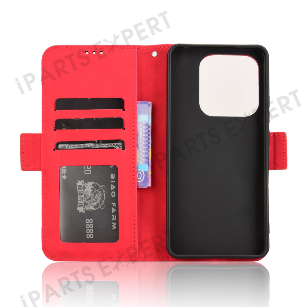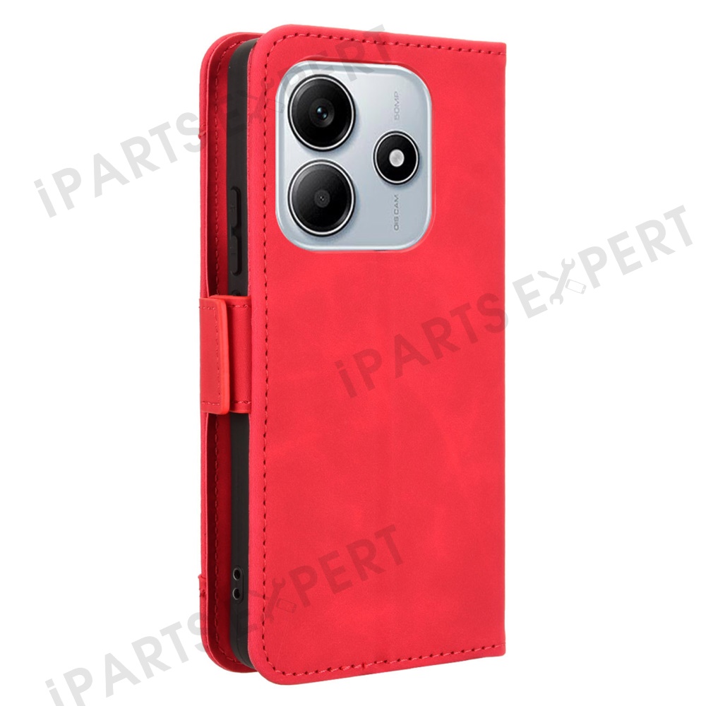 For Xiaomi Redmi Note 14 5G Leather Case Phone Wallet Cover with Multiple Card Slots - Red