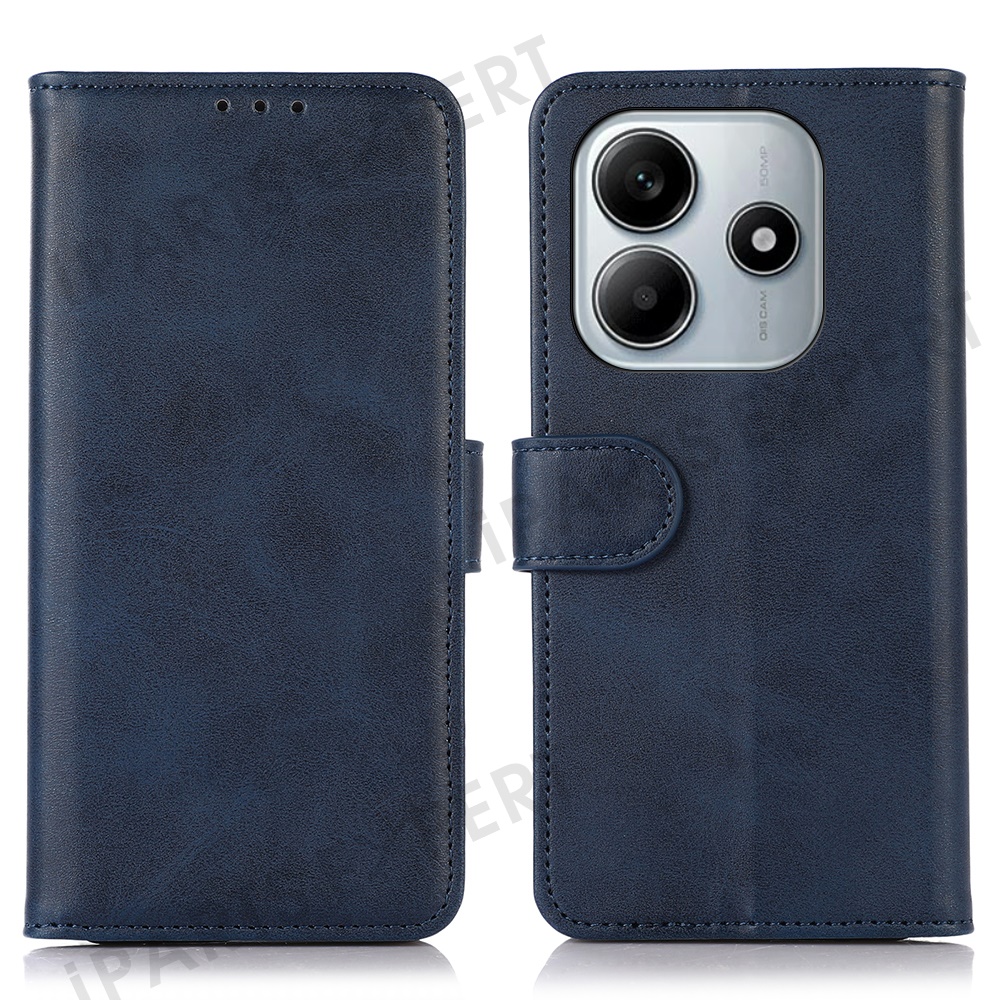 For Xiaomi Redmi Note 14 5G Case Cowhide Texture Leather Wallet Phone Cover with Stand - Blue