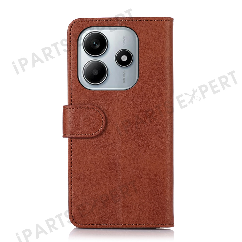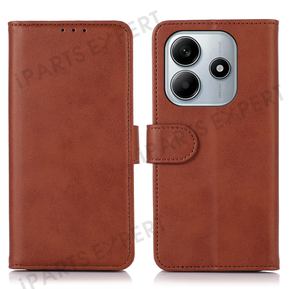 For Xiaomi Redmi Note 14 5G Case Cowhide Texture Leather Wallet Phone Cover with Stand - Brown
