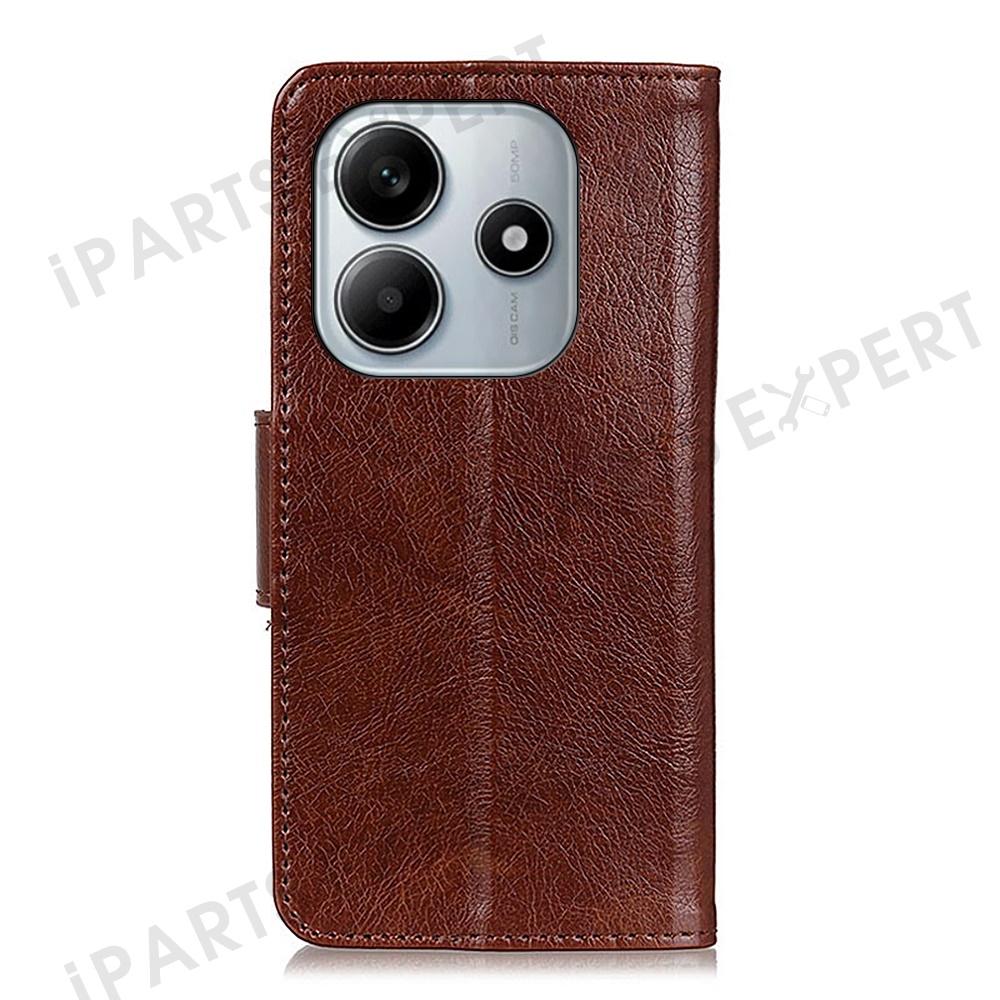For Xiaomi Redmi Note 14 5G Case Nappa Texture Split Leather Wallet Phone Cover - Brown